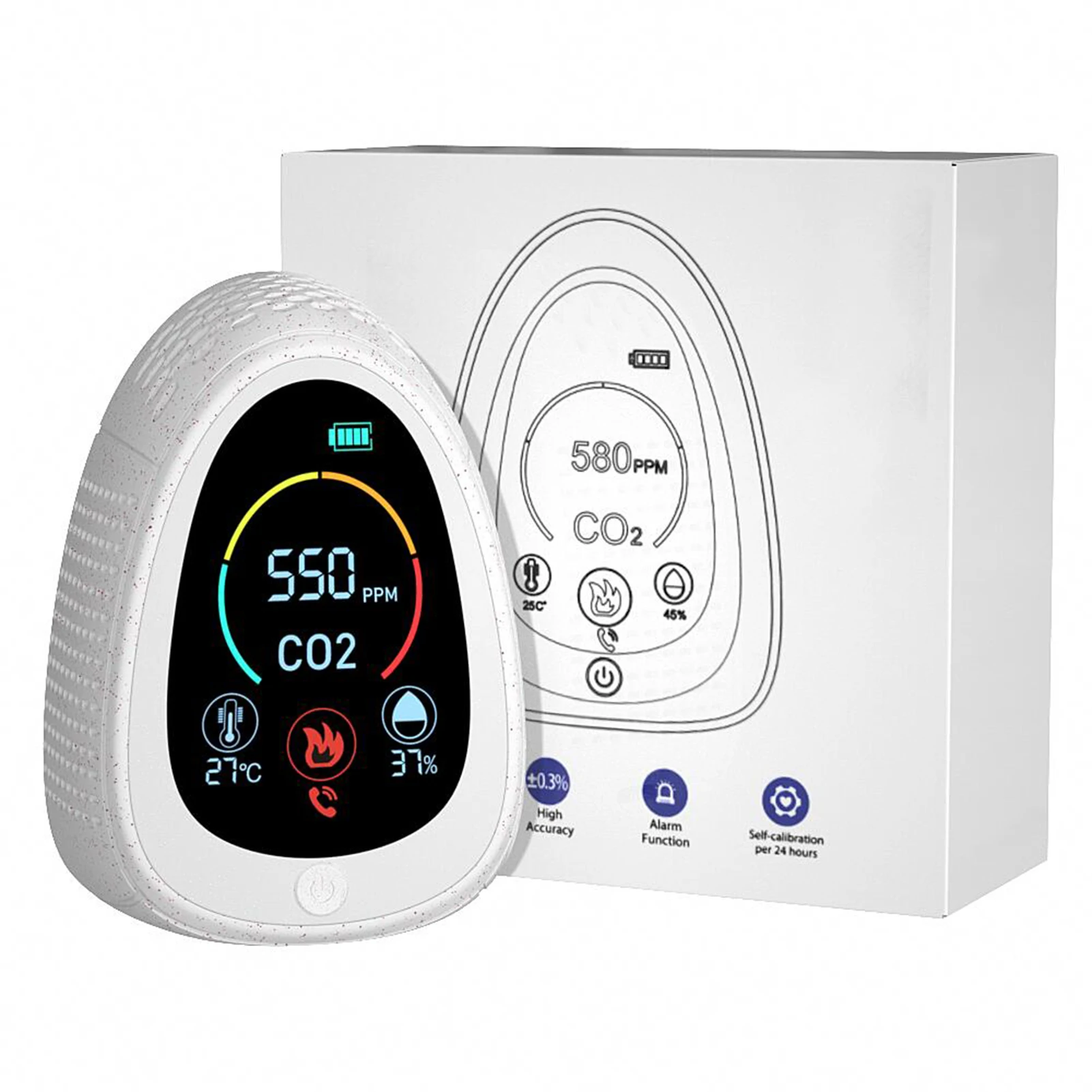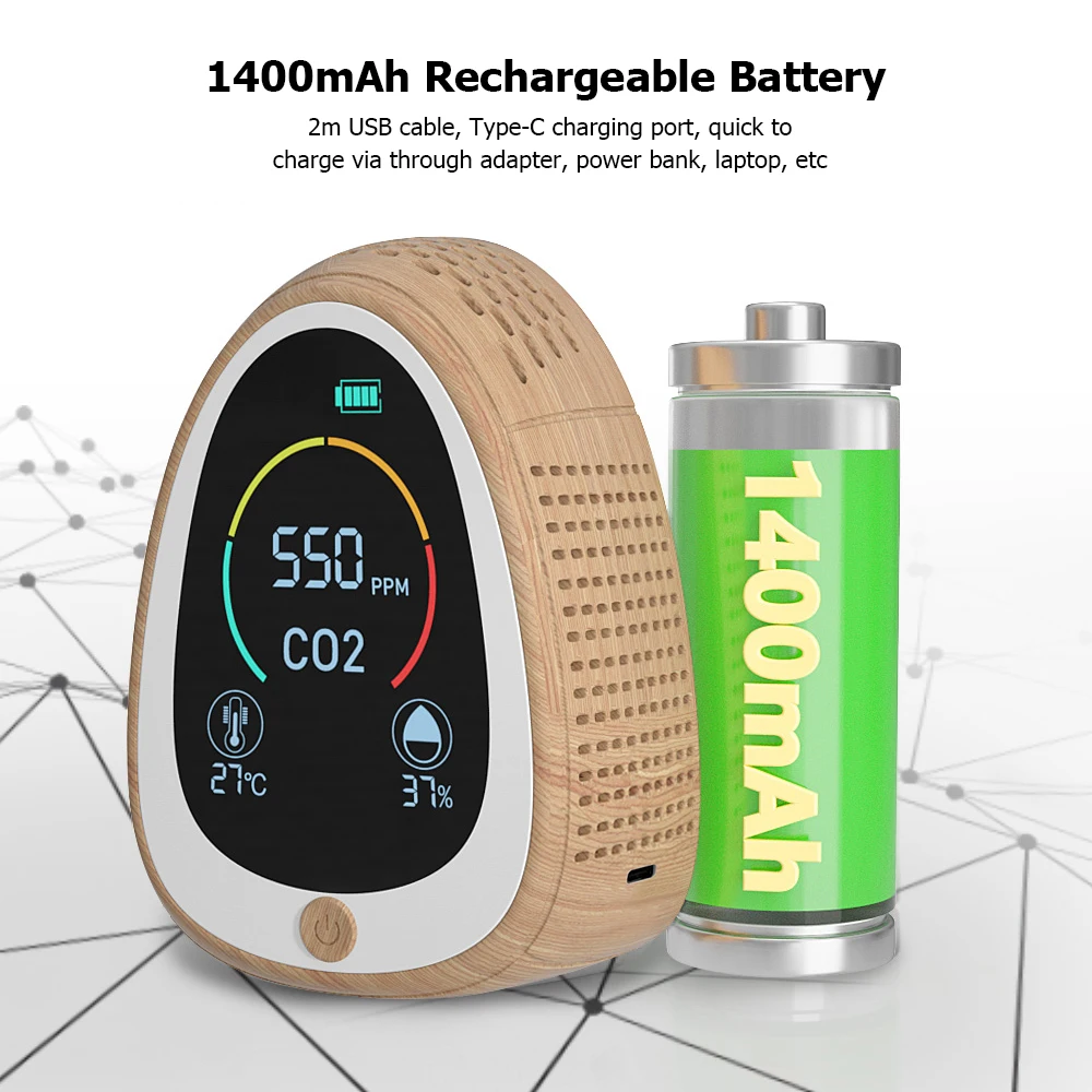 Детектор углекислого газа может эффективно обнаруживать концентрацию CO2 в окружающей среде, в которой вы живете. С ЖК-экраном, он отображает углекислый газ, уровень заряда батареи, температуру и влажность. С точным датчиком и функцией сигнализации, он может быть широко в доме, классе, гостиничном зале, квартире, офисе, тренажерном зале и многое другое!