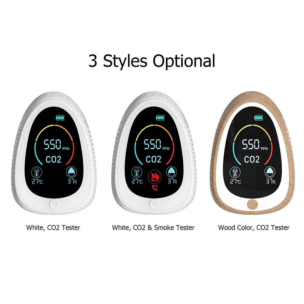 3 вида стилей дополнительно: белый, CO2 тестер/CO2 и тестер дыма; Цвет древесины, CO2 тестер. Второй стиль имеет как углекислый газ, так и обнаружение дыма, обеспечивая лучшую защиту.