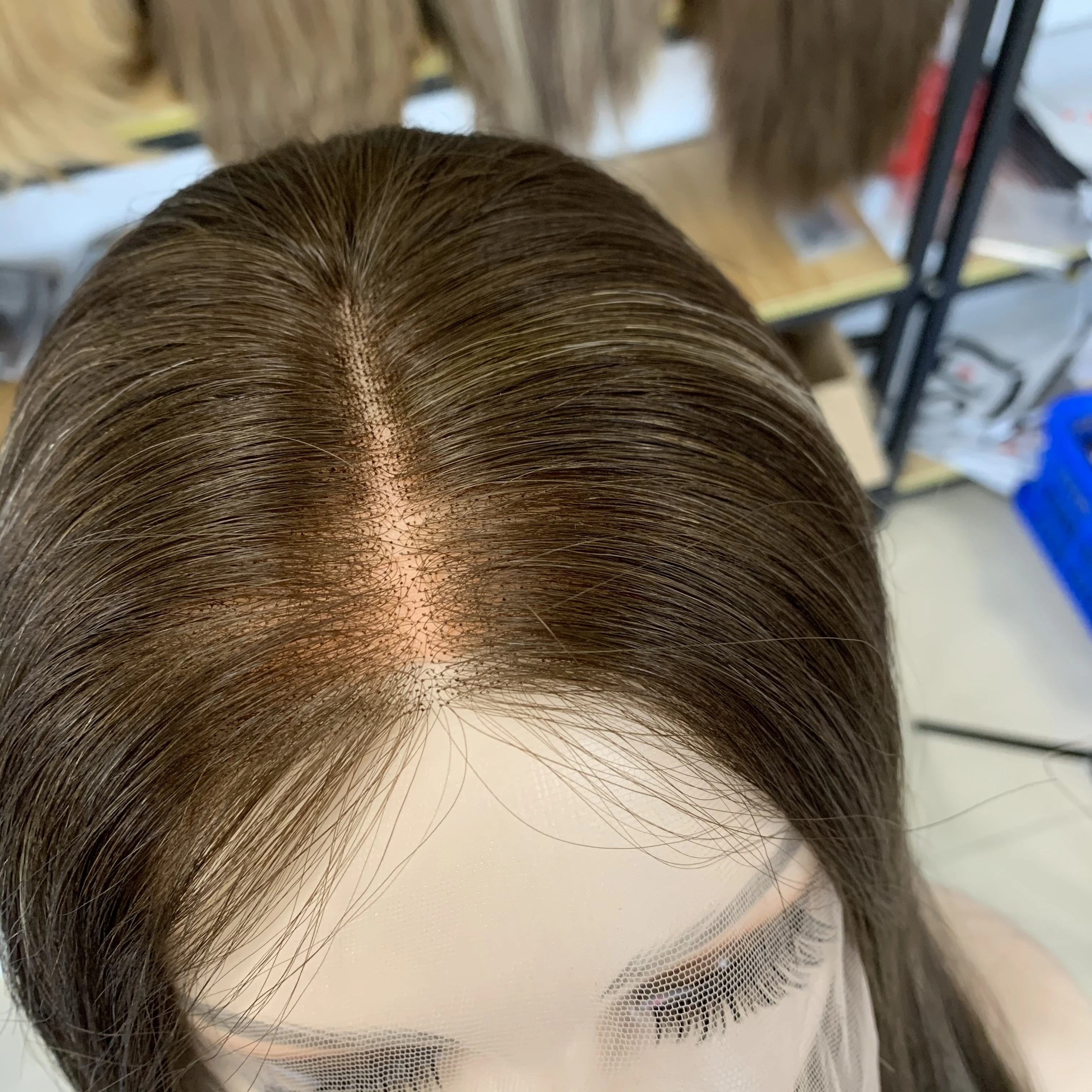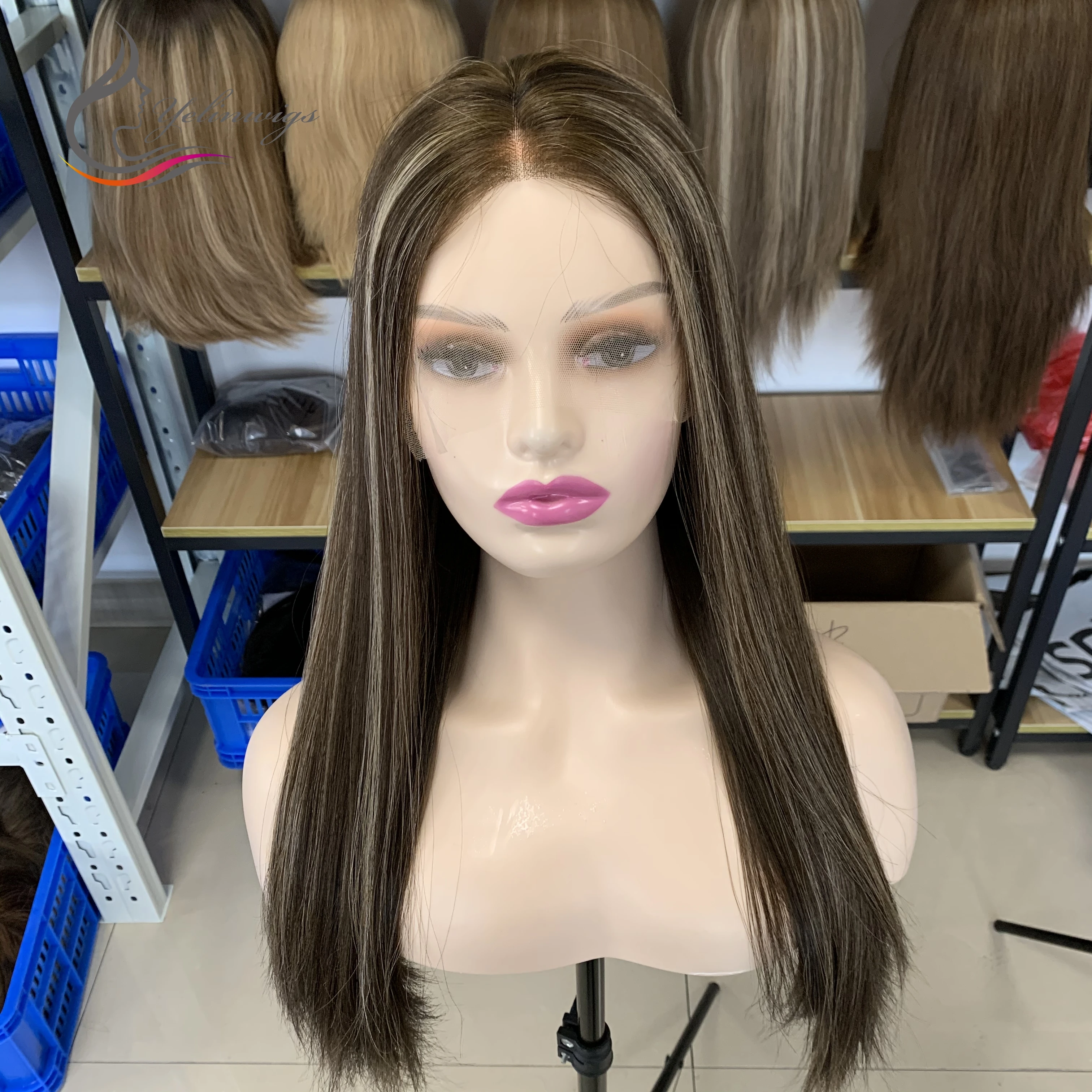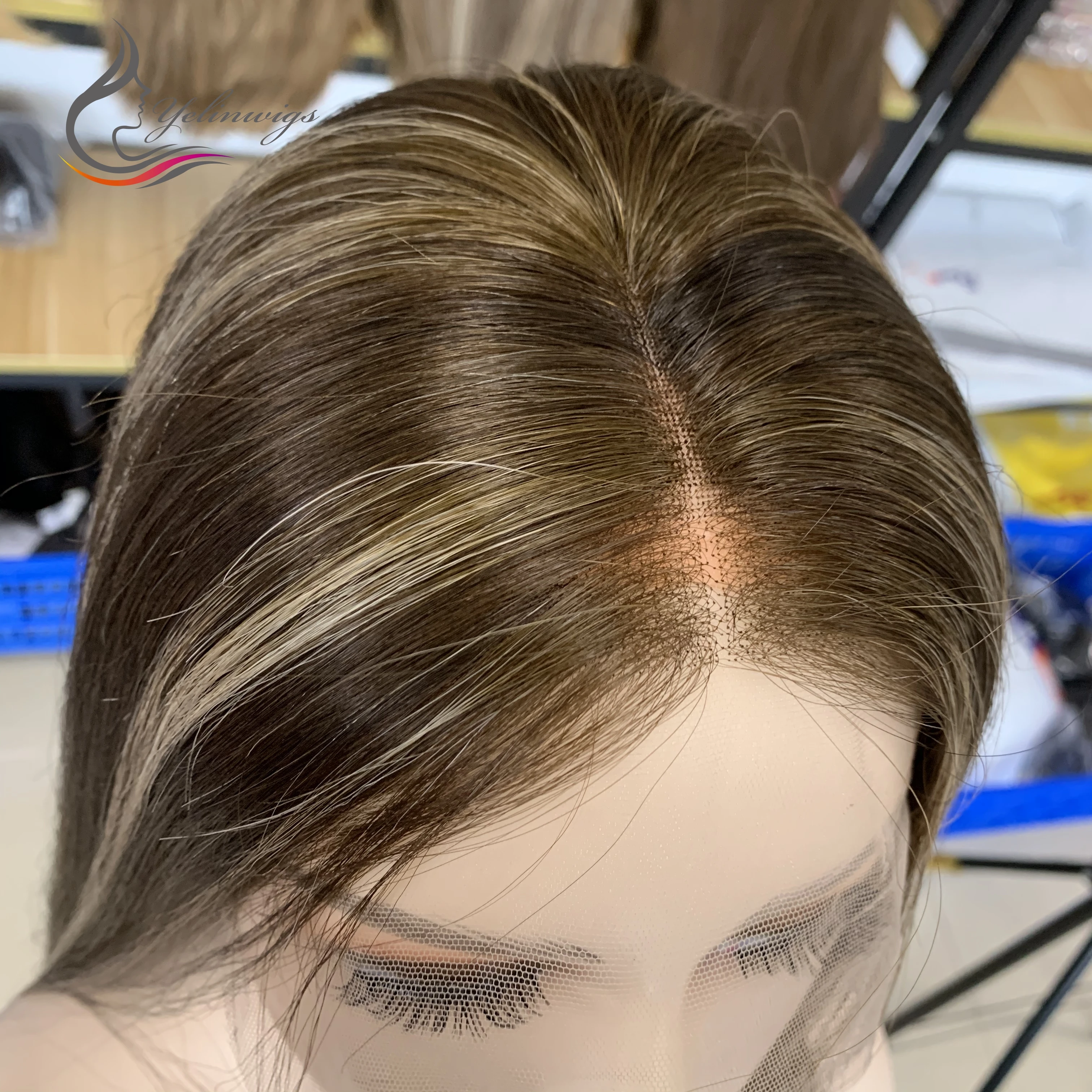 Yelin Бесплатная доставка, коричневый цвет, блестящие полосатые волосы, швейцарские кружевные верхние парики еврейский кошерный парик
