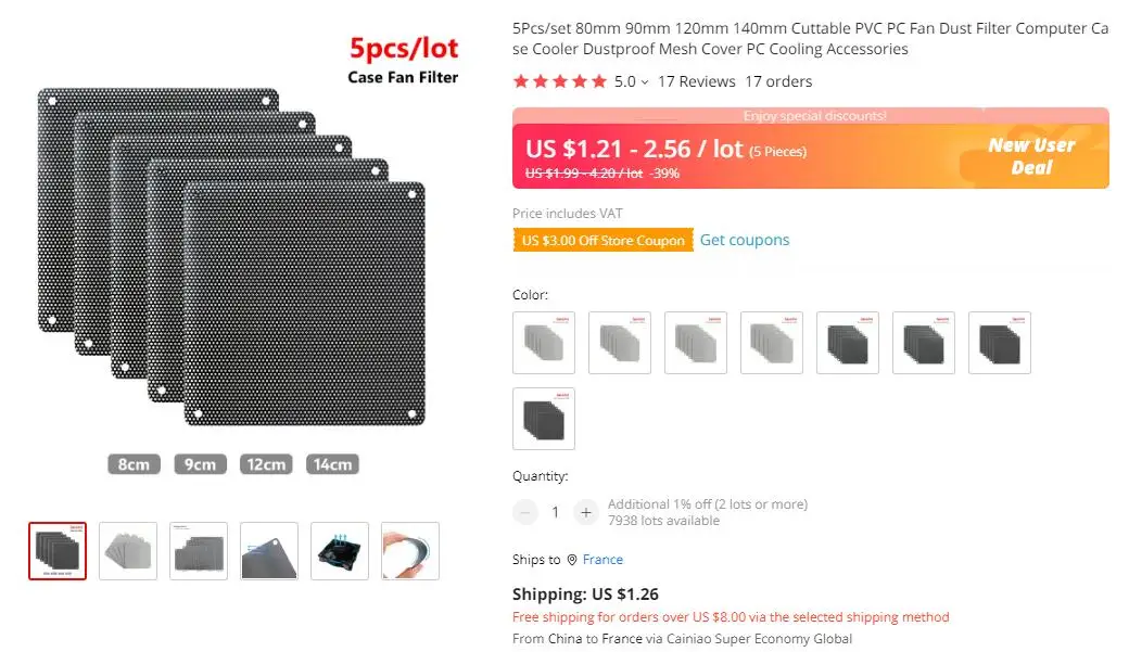 Диаметр сетки 0,8 мм, который может облегчить вентиляцию, понижения температуры корпус компьютера и вентилятор, эффективно защитить электронные компоненты, в то время как блокирует все виды из крошечной пыли, шерсти домашних животных и т. д.