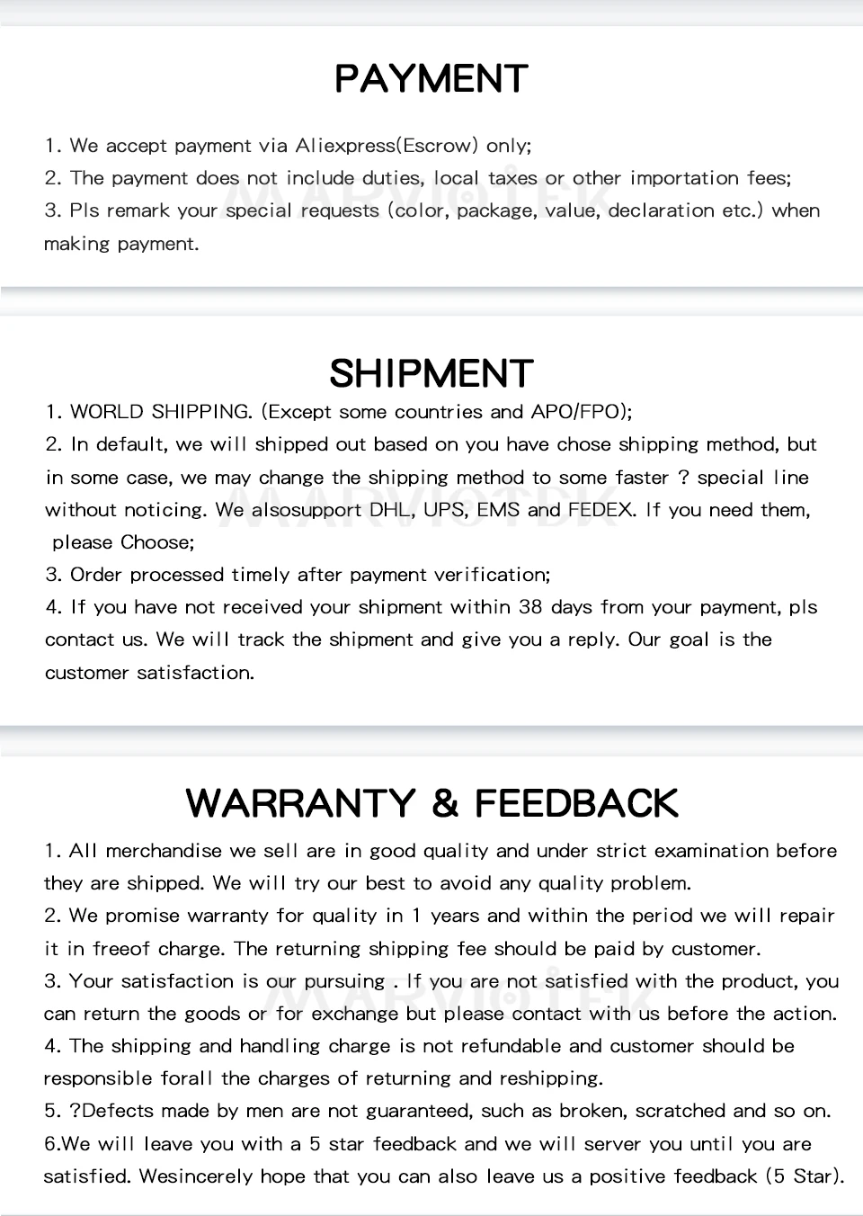 Specifications: