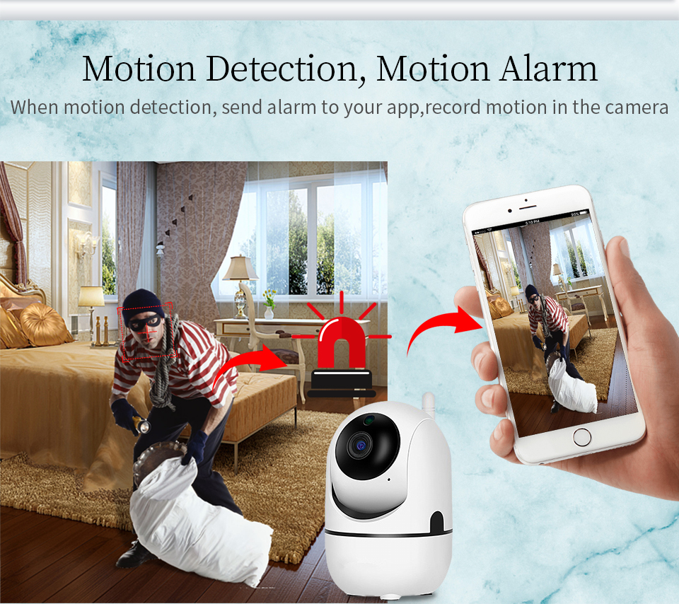 When motion detection, send alarm to your app,record motion in the camera