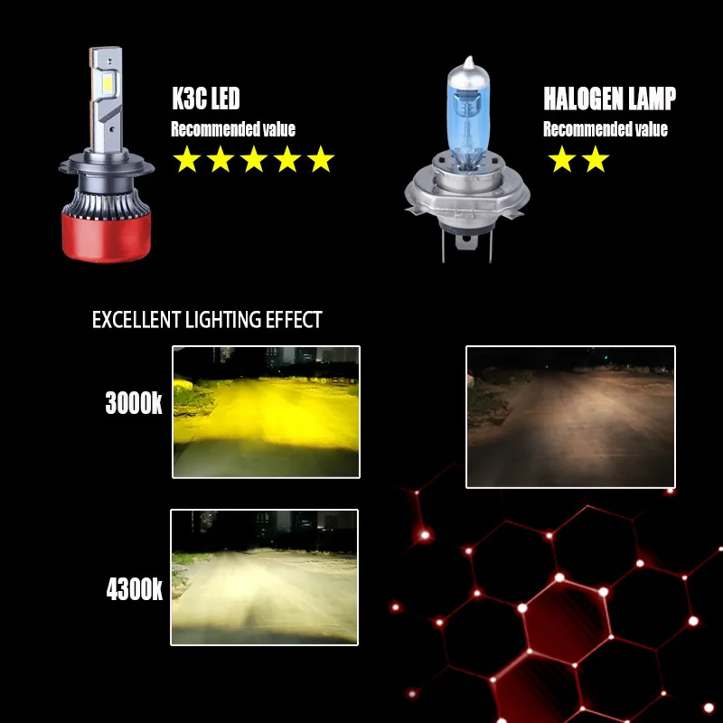 DAWNKNIGHT K3C Light Bulbs 12V H4 LED H7 H11 H1 15000LM Car Lamps 9012 9006 Led auto lamp H8 9005 9012 9006