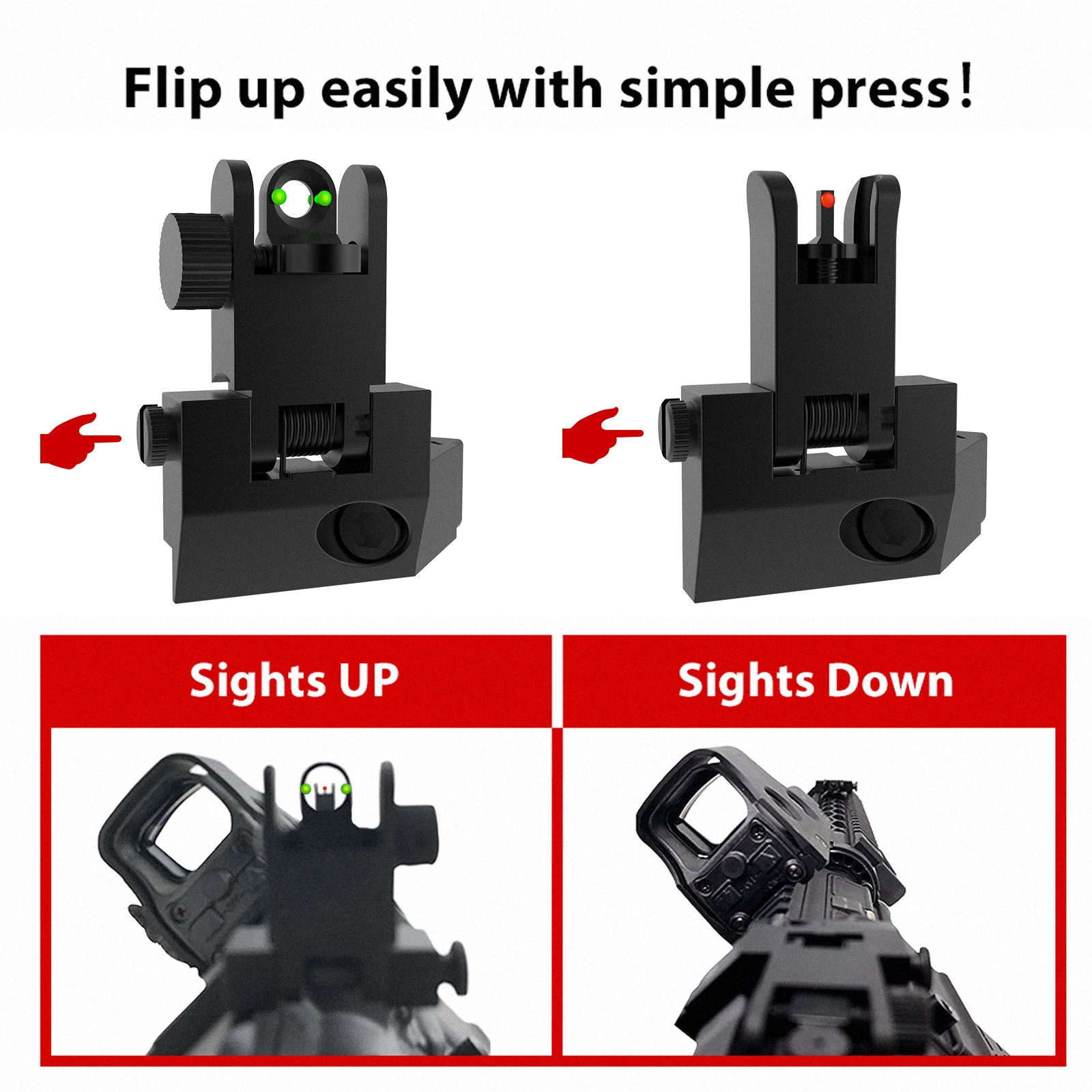 ❖With виден спереди Красный волокна достопримечательности и заднее зеленое волокно достопримечательности обеспечивают самые яркие точек прицеливания с низким уровнем светильник условия.