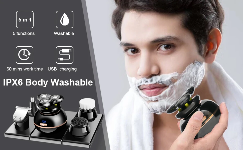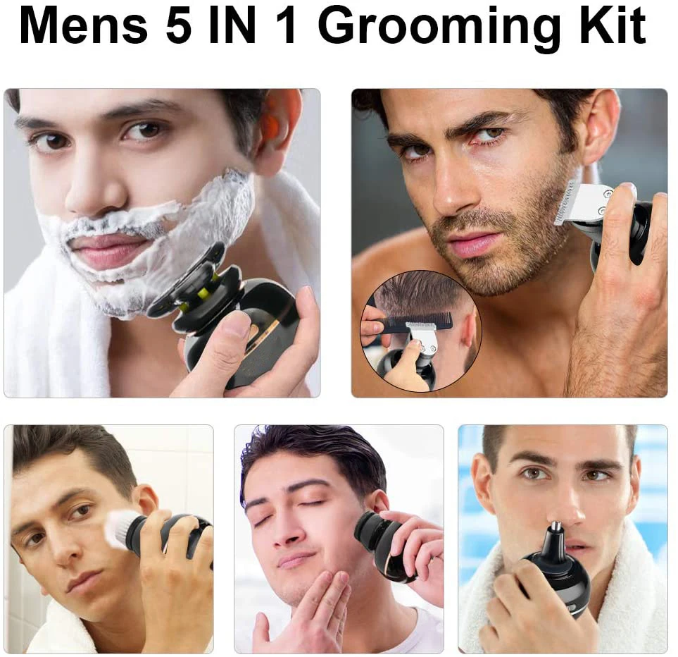 ❤🧔【 5 в 1 Многофункциональный Уход kit】с пятью съемными насадками, включая электробритва, триммер для бороды с 3-4-5-6 мм направляющими расчески, триммер для волос в носу, триммер для бакенбардов, щетка для очищения лица. Удовлетворить все ваши потребности в бритье и уход за лицом.👦