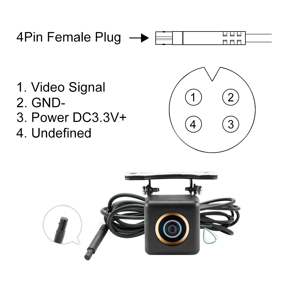 * MINI SOLID ZINC ALLOY SHELL---The back up camera is very small, its shell is made of high quality zinc alloy, shining, shockproof and stainless. Its installation method must be hanging mounted as the picture shows, or the image will be unusual.