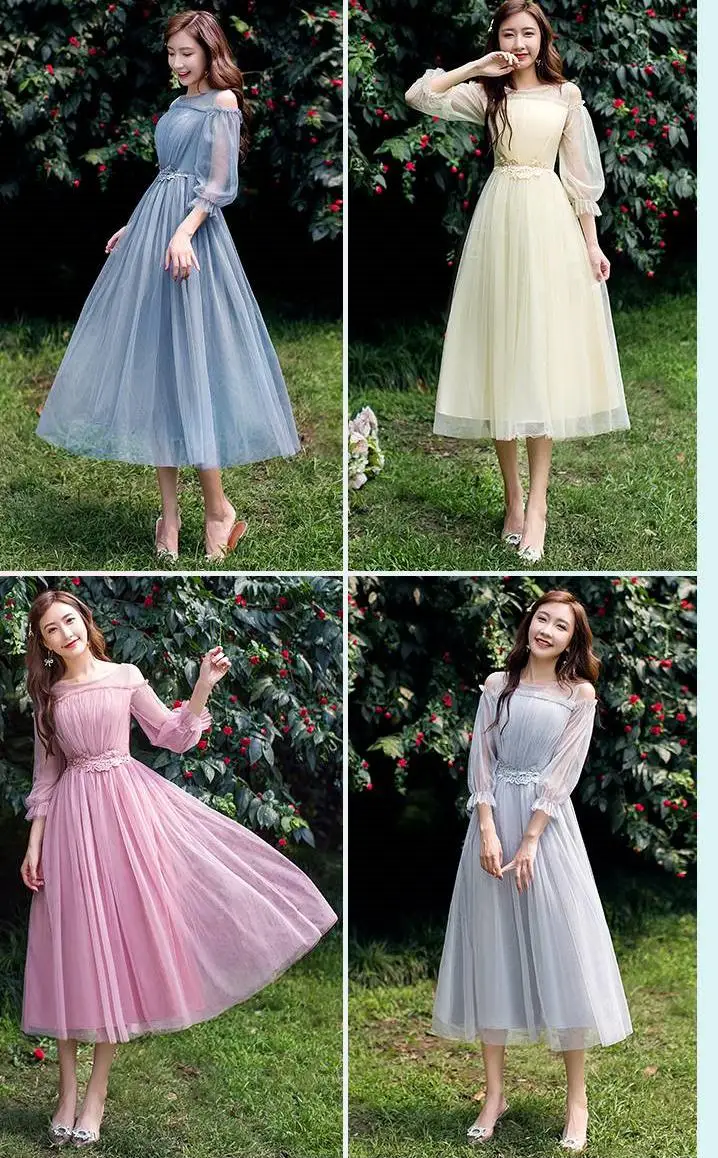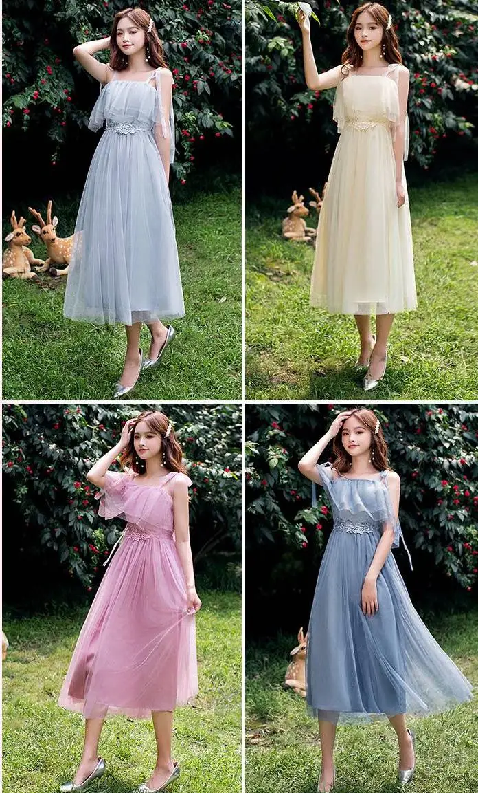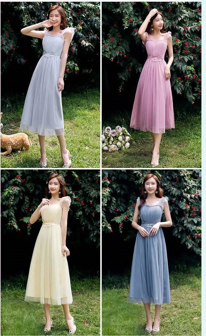 Элегантное женское платье подружки невесты, летнее ТРАПЕЦИЕВИДНОЕ ПЛАТЬЕ до колена с поясом, синее, серое, розовое, Сетчатое вечернее платье цвета шампанского