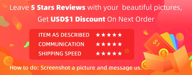 ▶3. Оставьте 5 звезд★★★★★С вашими красивыми фотографиями,Получите скидку $1 на следующий заказ.