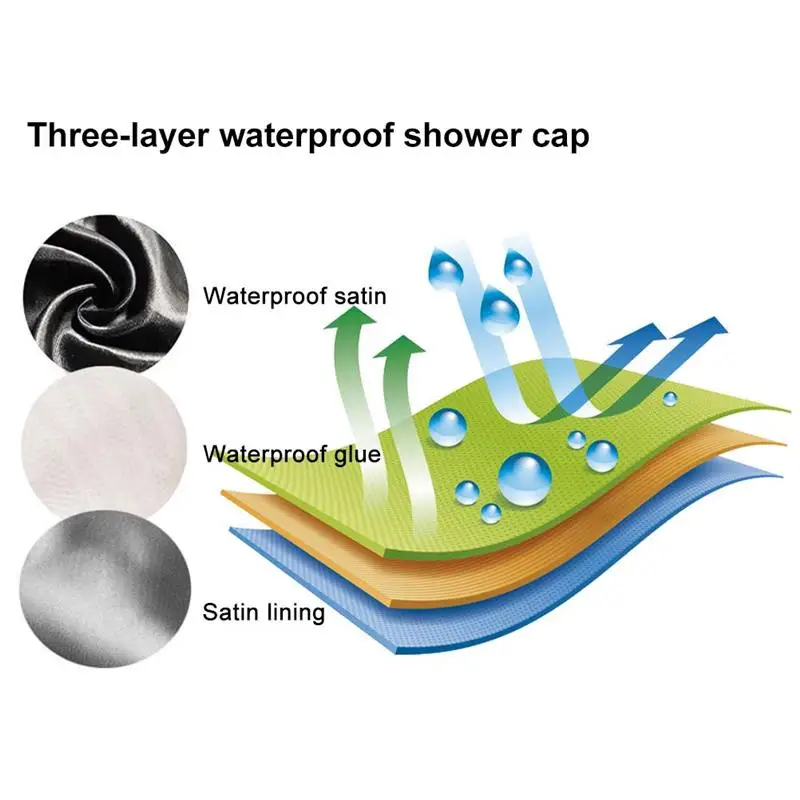 2. Двухслойный дизайн делает волосы более здоровыми: многоразовая шапочка для душа имеет водонепроницаемый нейлоновый внешний слой с полиуретановым покрытием и мягкую атласную подкладку. Когда вы любите душ или ванну, он эффективно сохраняет ваши волосы сухими. Вы также можете использовать его как чепчик для сна, чтобы уменьшить завихрение, запутывание и выпадение волос. Когда вы просыпаетесь утром, избегайте мытья и укладки волос.