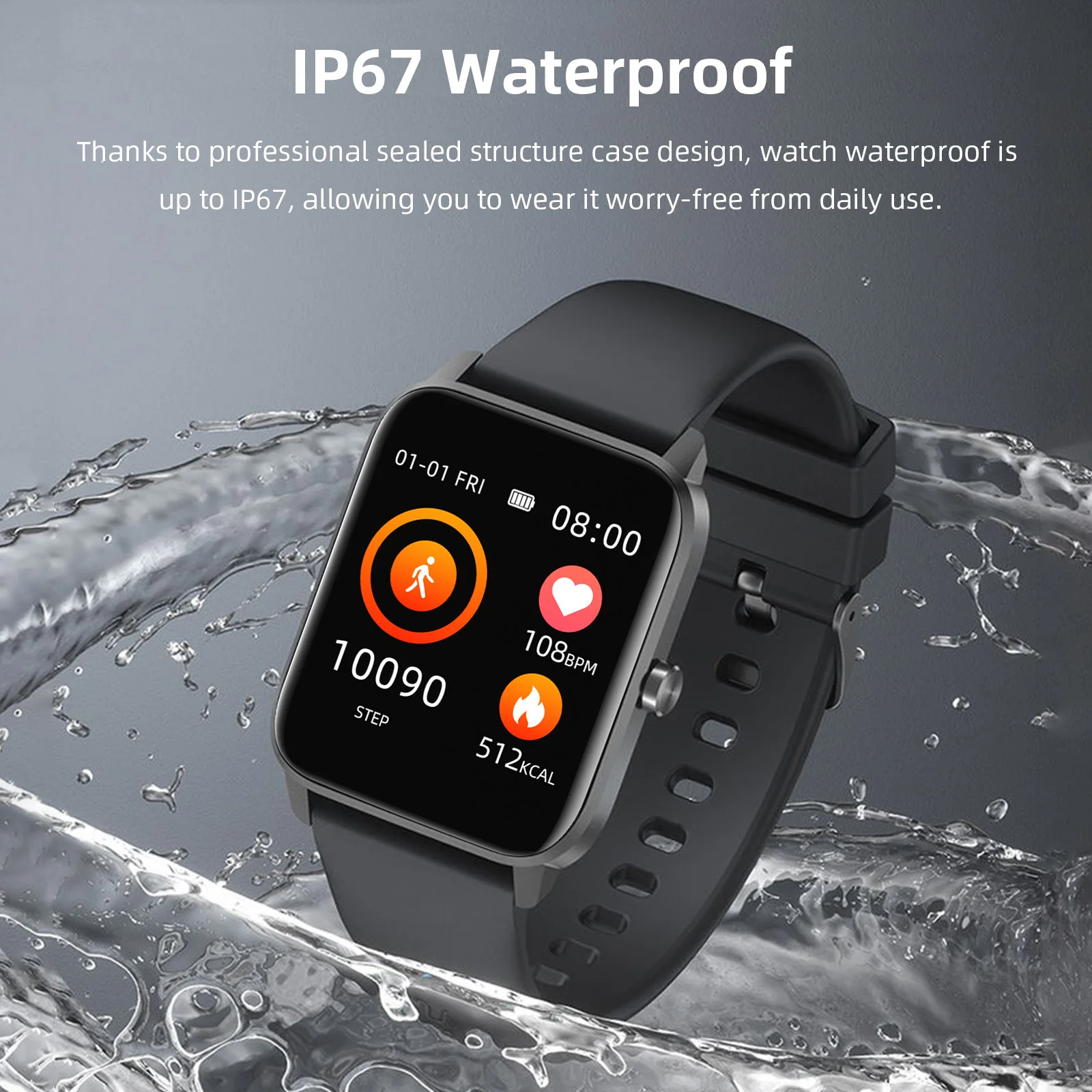 [IP67 Водонепроницаемый]Профессиональная конструкция обеспечивает водонепроницаемость IP67, что позволяет свободно носить его при ежедневном брызге воды.