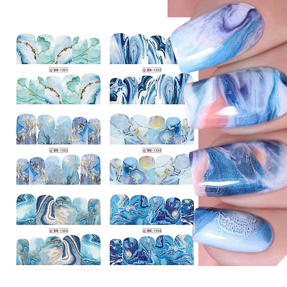 12x акварель MarbleGradient WaterSticker цветущие живопись "сделай сам" ManicureWrap ногтей ArtCharms Слайдеры для ногтей