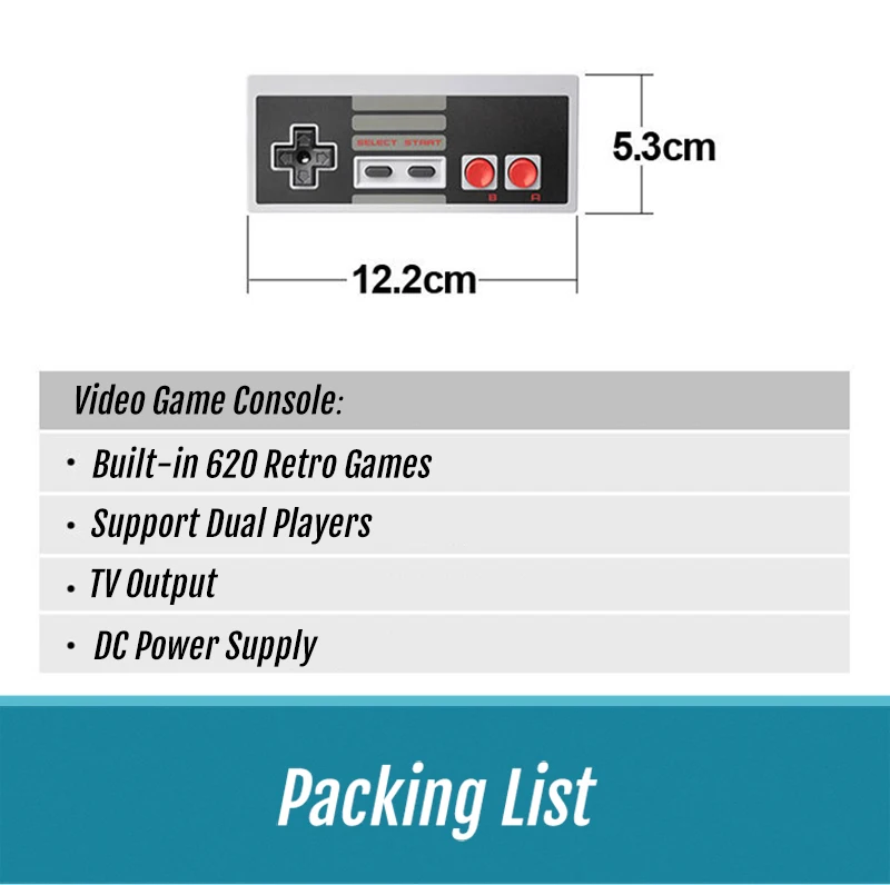 Встроенный 620 классических игр в общей сложности, широкий выбор высококачественных игр на ваш выбор, нет необходимости загружать и устанавливать. Простой в использовании, просто подключите и играйте ..