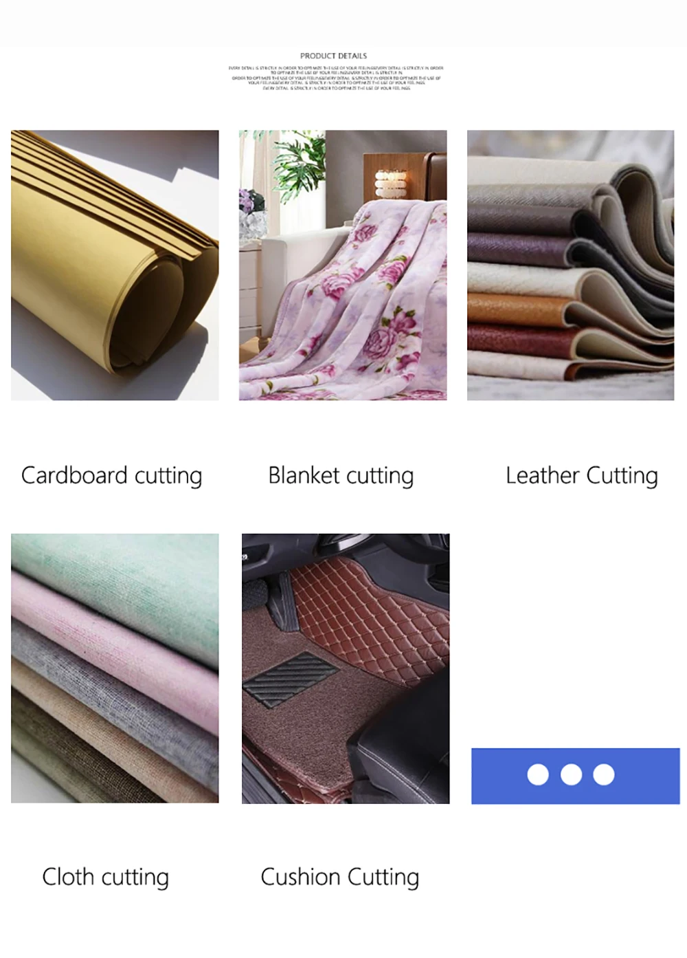 Этот продукт широко используется в семьях или различных фабриках, которые нуждаются в резке 1-27 мм (в зависимости от материалов), таких как нижнее белье, одежда, текстиль, кожа, обувь и шляпы, мебель, упаковка, чемоданы и сумки, сумки, занавески и спортивные товары.