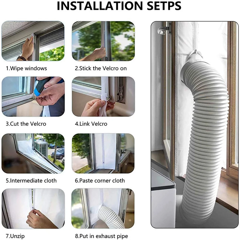 Если шланг вытягивается из уплотнения, и это снимается внутрь, окно может быть закрыто в любое время без необходимости снимать текстильную пленку.