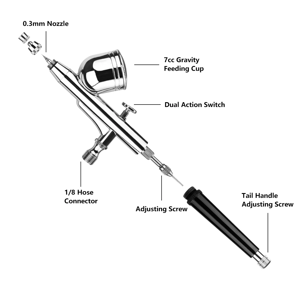Двойного действия гравитационный питательный Аэрограф Для изобразительного искусства, нейл-арта, временного боди-арта, хобби и т. Д.