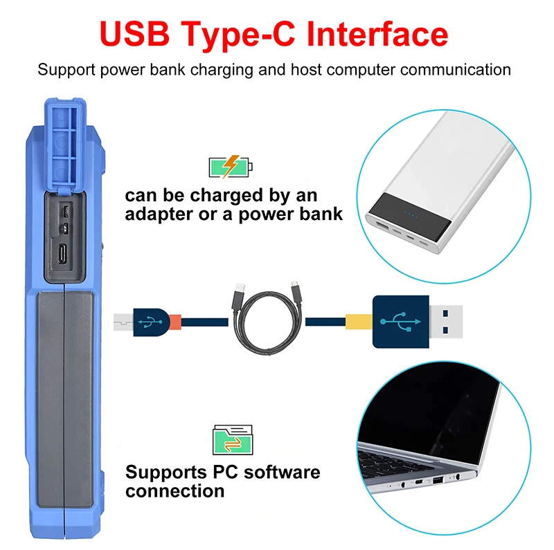 ✔Интерфейс USB type-C может заряжаться адаптером или блоком питания и поддерживает подключение программного обеспечения ПК.