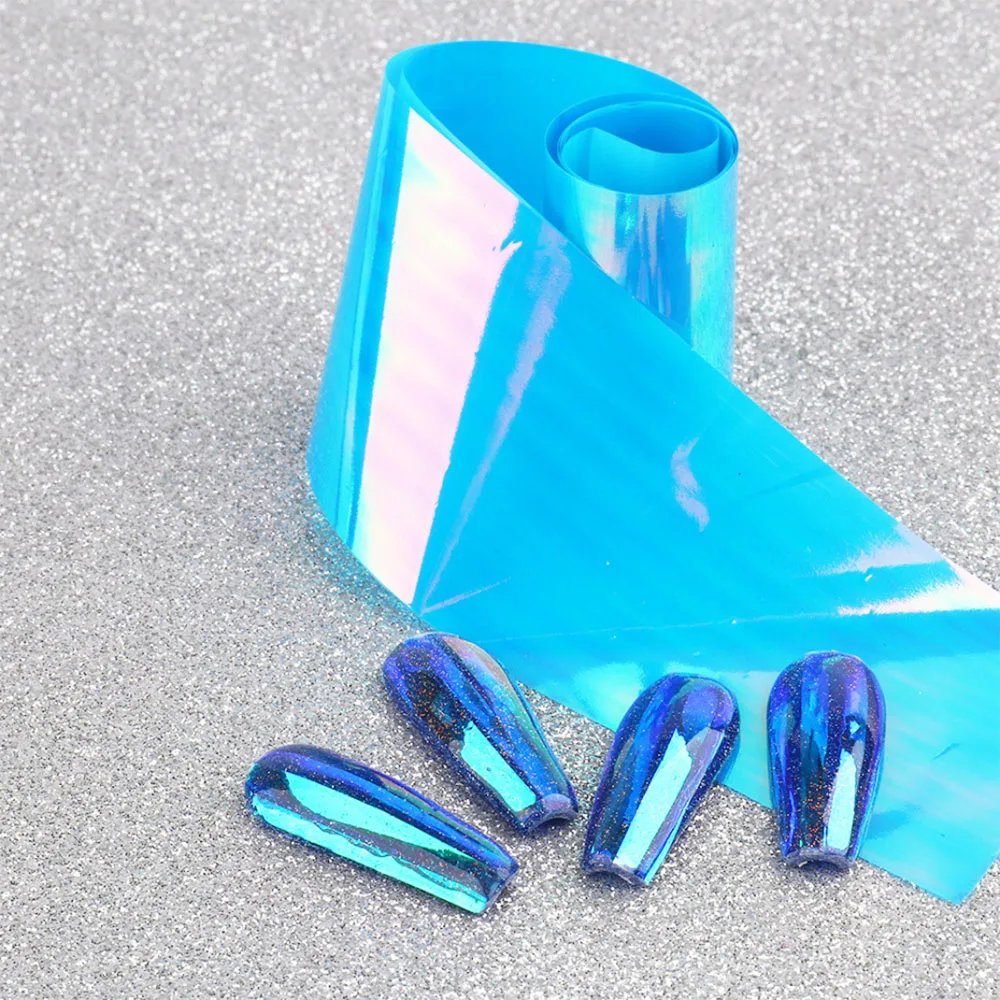 4. Нажмите фольгу блестящей стороной вверх, на ноготь и протрите пальцем, или для более точного нанесения, используйте резиновую палочку. (Для достижения наилучших результатов нарежьте кусок фольги длиной достаточно большой для ногтя, его легче контролировать и применять плоский). Различные цвета фольги можно смешивать на ногтях