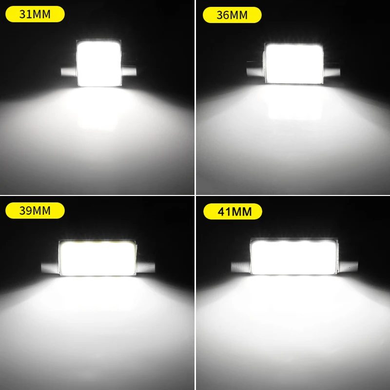 Основание Тип: Стандартный C5W/C10W 31/36/39/41 ммТип светодиодный: COBСветовой поток: 100 ламовНапряжение продукта: 12 В постоянного тока (i.e. Выходное напряжение общего автомобиля)Мощность: 2,76 W(Чип на плате) Срок службы: 50000 часовТип: светодиодный светильник для заменыИспользование: лампа для чтения, Лицензионная лампа, лампа для крыши, задний фонарь, лампа для задней коробкиЦвет лампы: белый светильник Особенности продукта:1. Импортный SMD чип используется для продукта. Ультра-тонкий дизайн формы пластины делает установку лучше и светильник более ровным, избегая Точечный светильник создает недостатки плохой ширины экспозиции; продукт подходит для напряжения 10-13 в. Этот светильник SMD источник диффузии, широкоугольный светильник особенности высокой яркости; 2. Без каких-либо задержек в светильник ing, высокий светильник чистоты, сильный, с отличной цветопередачей и проникновения; 3. Светодиодный светильник, излучающий диод, который потребляет меньше электроэнергии и может лучше защитить автомобильную цепь; 4. Светодиодный индикатор не имеет нити, хорошее рассеивание тепла, низкий ток, низкое тепловыделение и меньшее окисление транспортных цепей; Примечание:При ручном измерении возможна погрешность ± 2 мм. Посылка включает в себя:1x C5W гирлянда светодиодная лампа