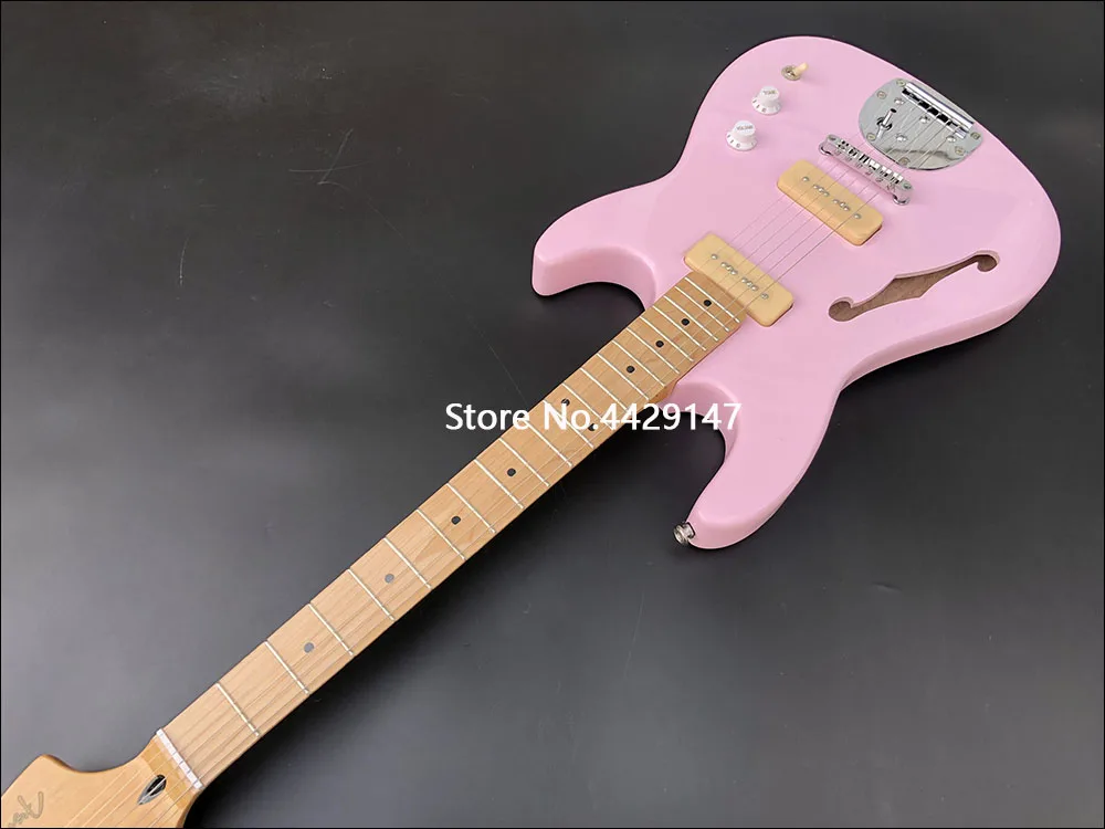 F Hole ST электрогитара корпус из красного дерева кленовый вырез Розовый Блестящий Отделка высокое качество