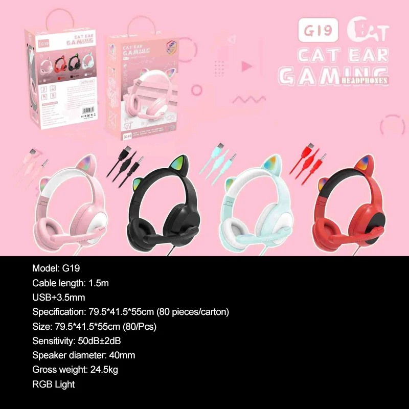 Улучшенные цветные легкие наушники ear cat