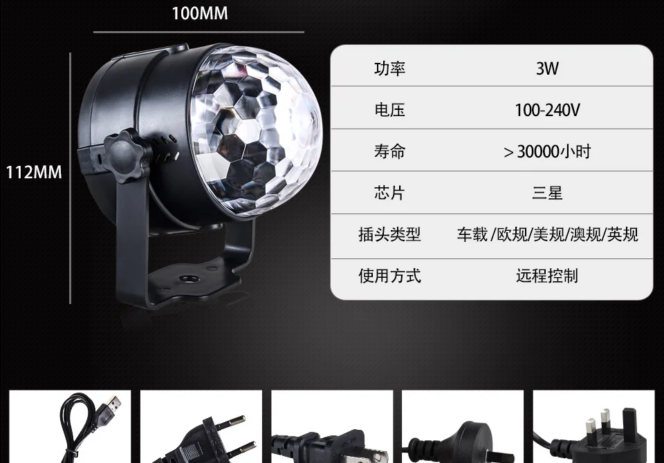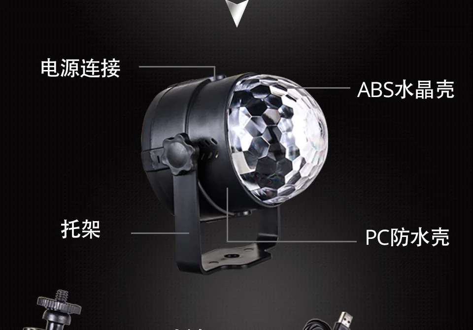 Многофункциональные дискотечные огни: 3 режима активации звука + 7 режимов освещения + вспышка + управление скоростью вращения + управление скоростью вспышки.