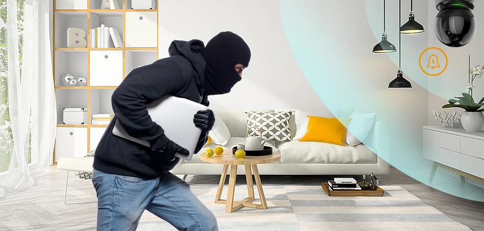 Каждый раз, когда кто-то врывается, встроенная сирена гаснет, и прожектор включается, чтобы предотвратить нежелательных людей.