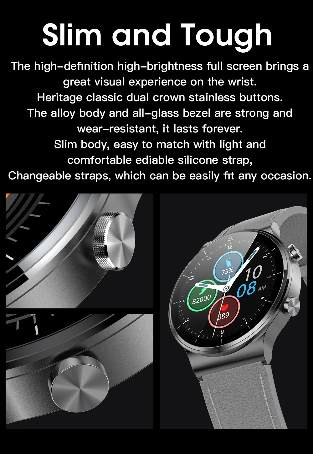 Высокой четкости с высоким уровнем яркости полный экран приносит Отличный визуальный опыт на запястье. Классическая двойная корона из нержавеющей стали Корпус из сплава и стеклянный Безель прочные и Износостойкий. Это длится всегда. Тонкий корпус, легко сочетается с светильник Удобный силиконовый ремешок Сменные ремни, которые могут быть легко подходят для любого случая