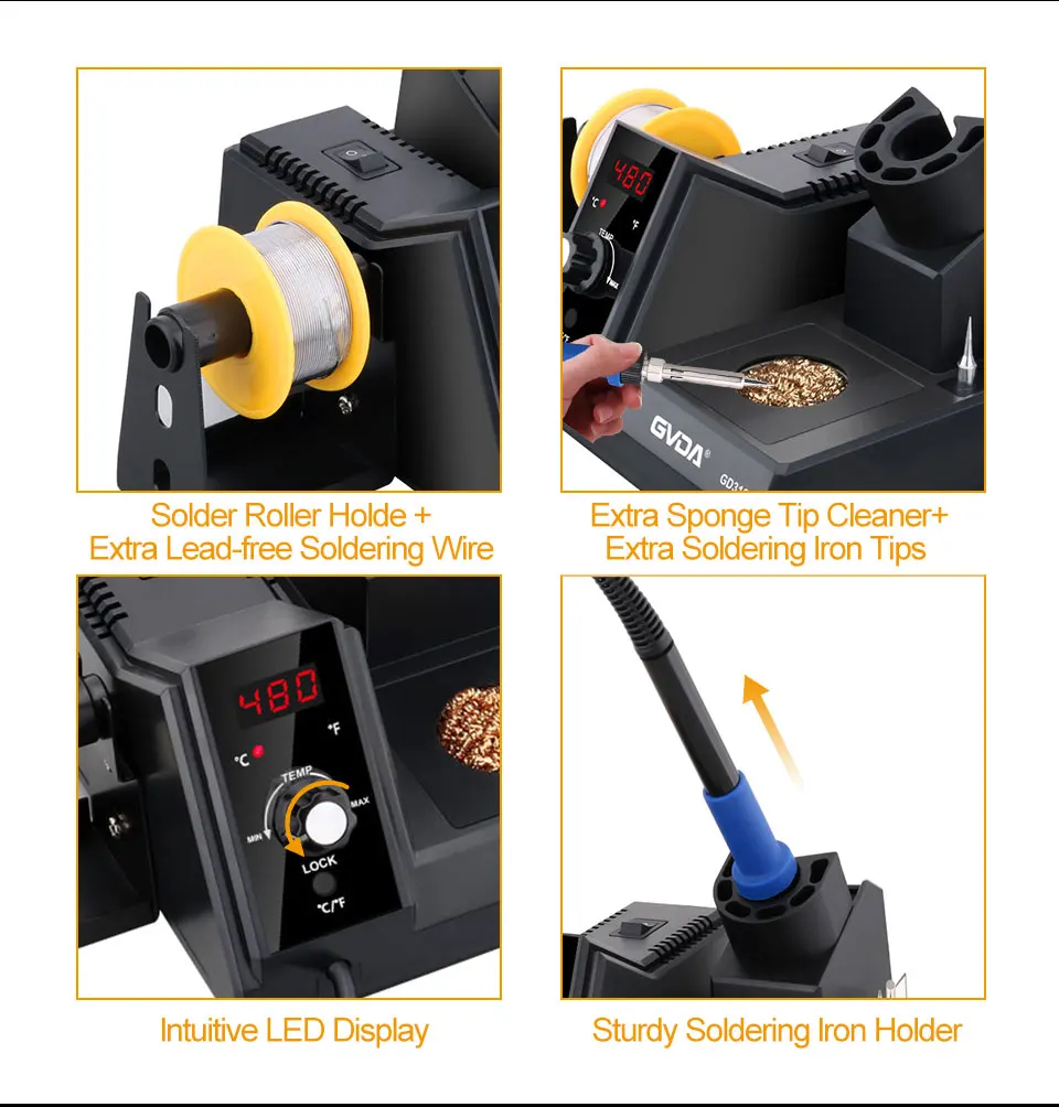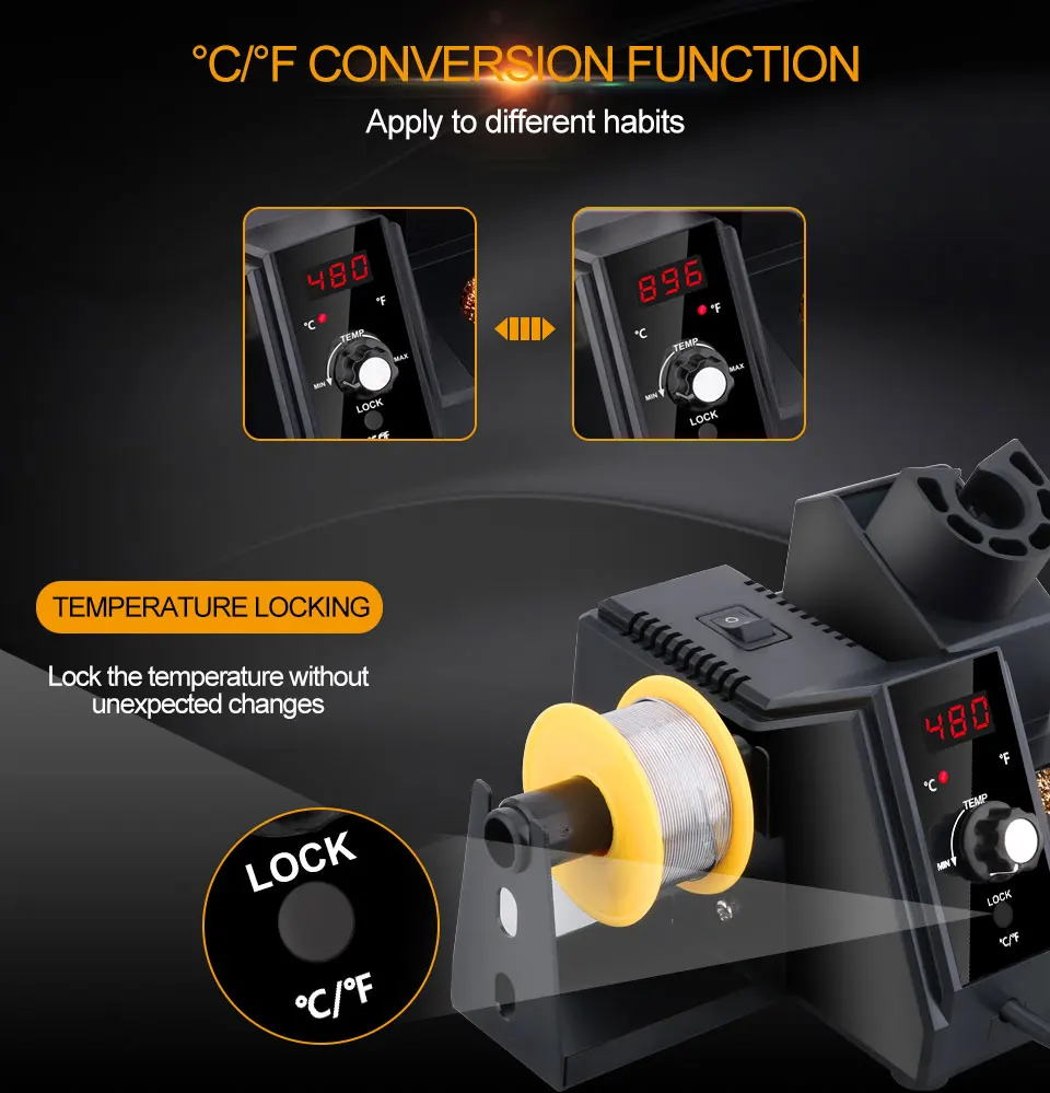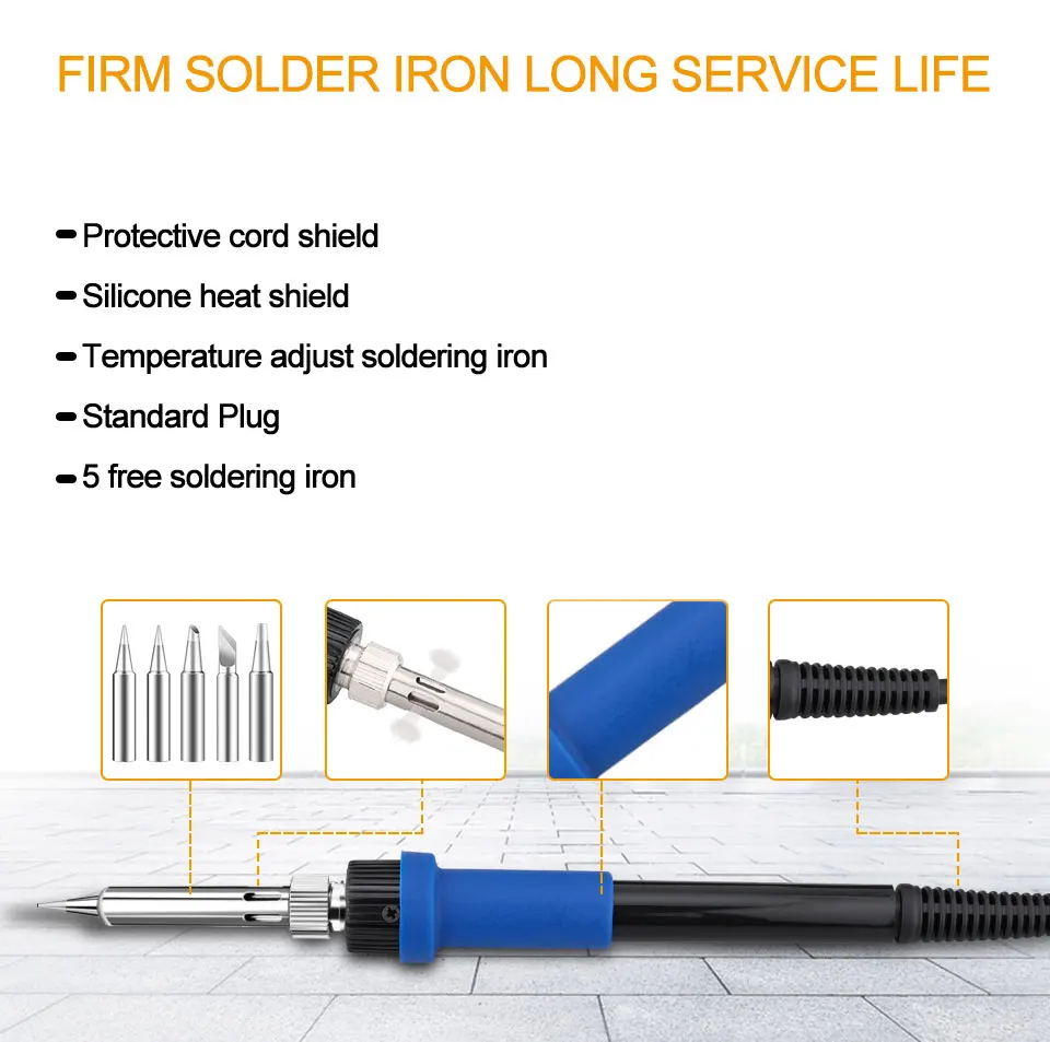 Примечание: паяльник должен быть протестирован, прежде чем он покинет фабрику, поэтому наконечник пайки может покрыть небольшое количество олова, корпус будет слегка пожелтеть, что является нормальным явлением.