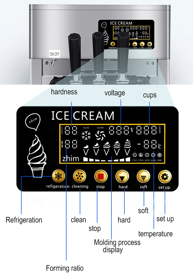Модель: BL25Y Материал: нержавеющая сталь Материал бункера: пищевая нержавеющая сталь Напряжение: 220V50HZ 110V60HZ Мощность: 1200 Вт Выход: 18-22 л/ч Вместимость бункера: 3л * 2 Объем замерзающего цилиндра: 1,8 л * 2 Система охлаждения: с воздушным охлаждением Компрессор: Panasonic/Gree Хладагент: R22 / R410a Размер изделия: 53*40*76 см Вес: 56 кг