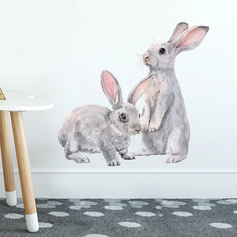 Настенные наклейки с изображением двух кроликов для детской комнаты, украшения детской комнаты, съемные обои, животные, зайчик, настенные наклейки