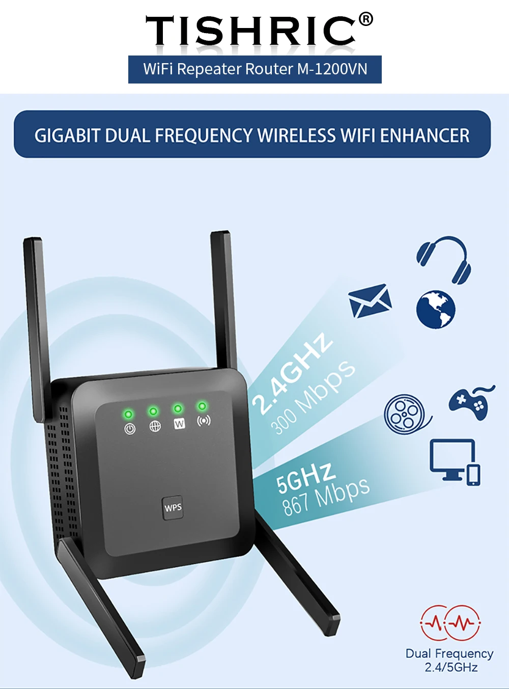 TISHRIC Ретранслятор с большим диапазоном Wi-Fi гигабитный маршрутизатор Ретранслятор Wi-Fi усилитель сигнала расширитель Беспроводной ретранслятор
