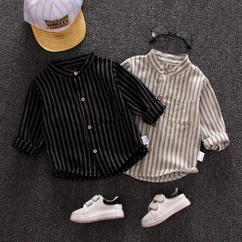 Новая рубашка в полоску одежда для малышей с длинными рукавами, весна-осень, тонкие рубашки От 0 до 4 лет Детские хлопковые топы Детский, для маленьких мальчиков, футболка