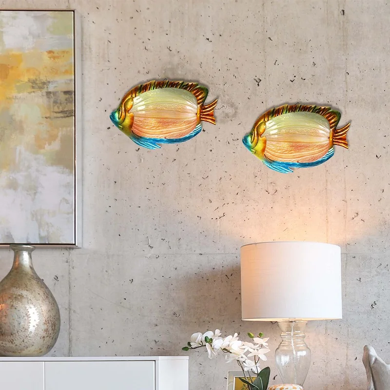 Восхитительный декор стен-Изготовлен из высококачественного железа и ручной структуры тела, что рамка является прочным; Между тем, изысканная рыба состоит из живых глаз, милый рот, красивая задняя роспись стекла шаблон и великолепные ласты
