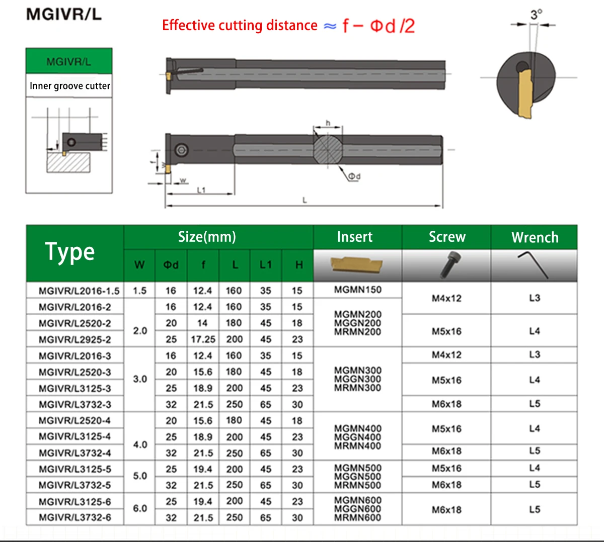 1. «MGIV» означает: инструмент для обработки канавок обычного внешнего диаметра, выбирается в соответствии с требованиями к обработке канавок