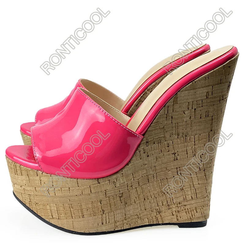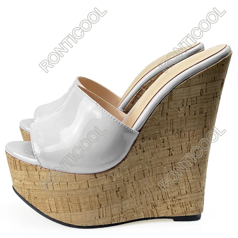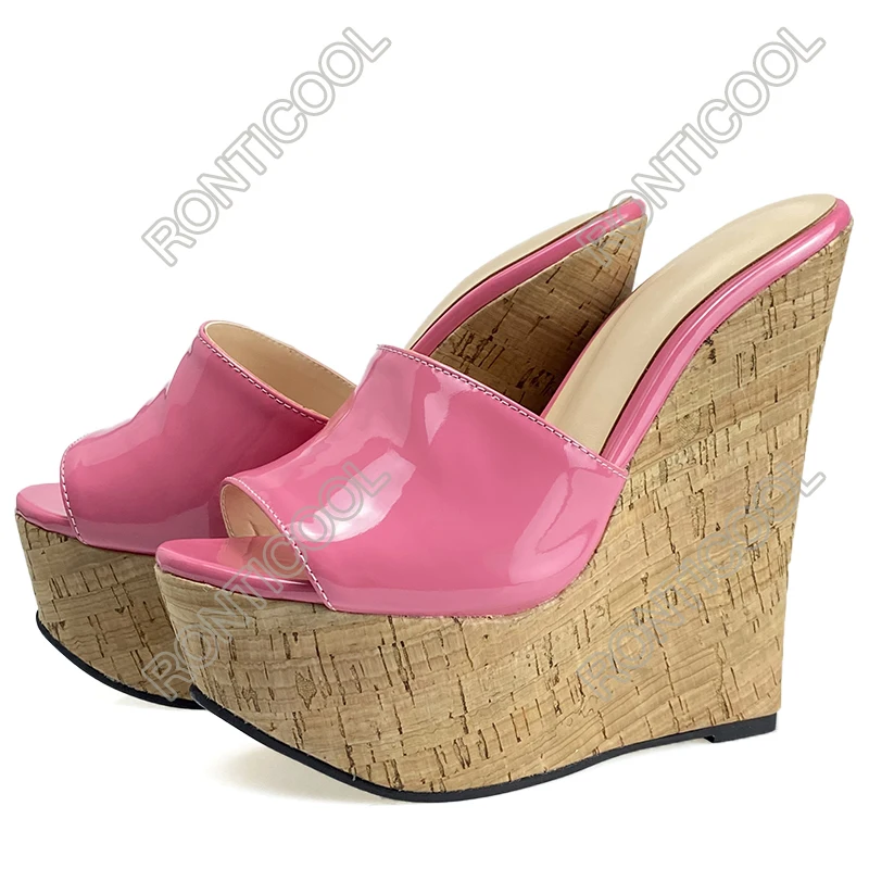 Ronticool/женские сандалии без задника ручной работы из лакированной кожи на танкетке с открытым носком; Великолепная обувь для вечерние 10 цветов; Большие размеры 35-46