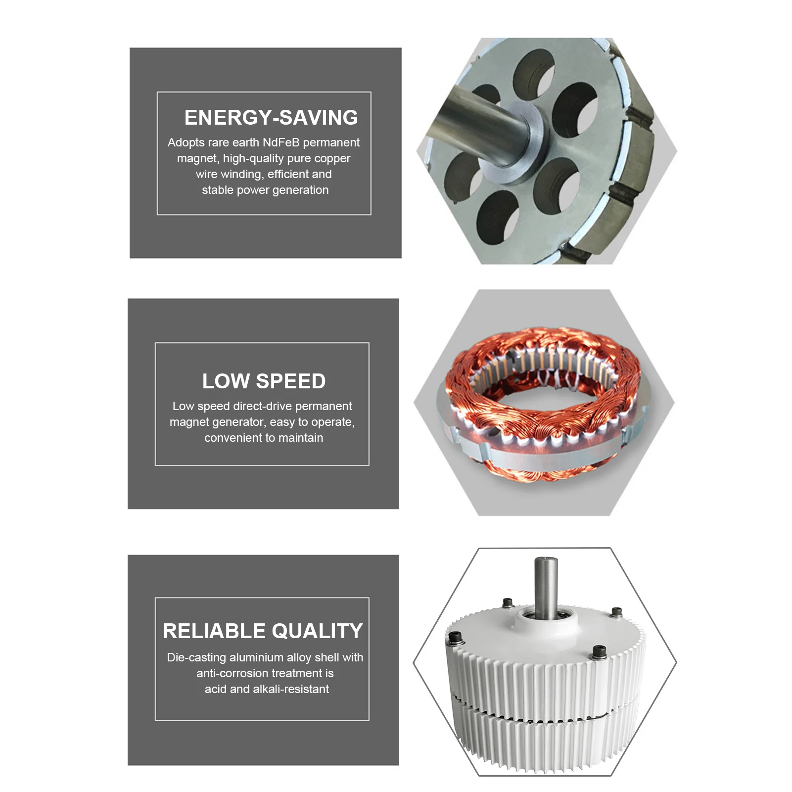 Принимает редкоземельный NdFeB постоянный магнит, Высококачественная чистая медная проволочная обмотка, эффективная и стабильная генерация энергии, более энергосберегающая.