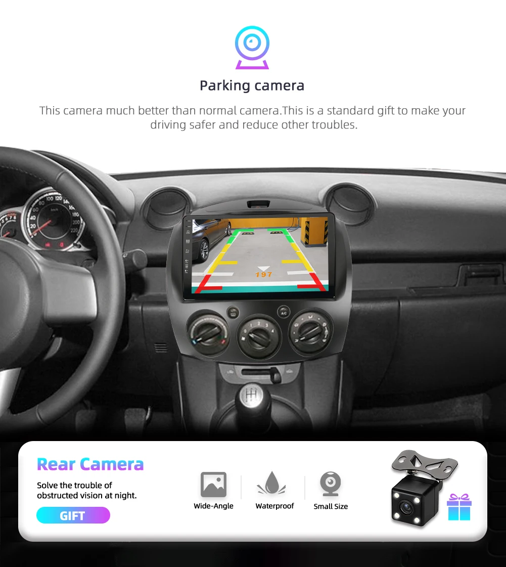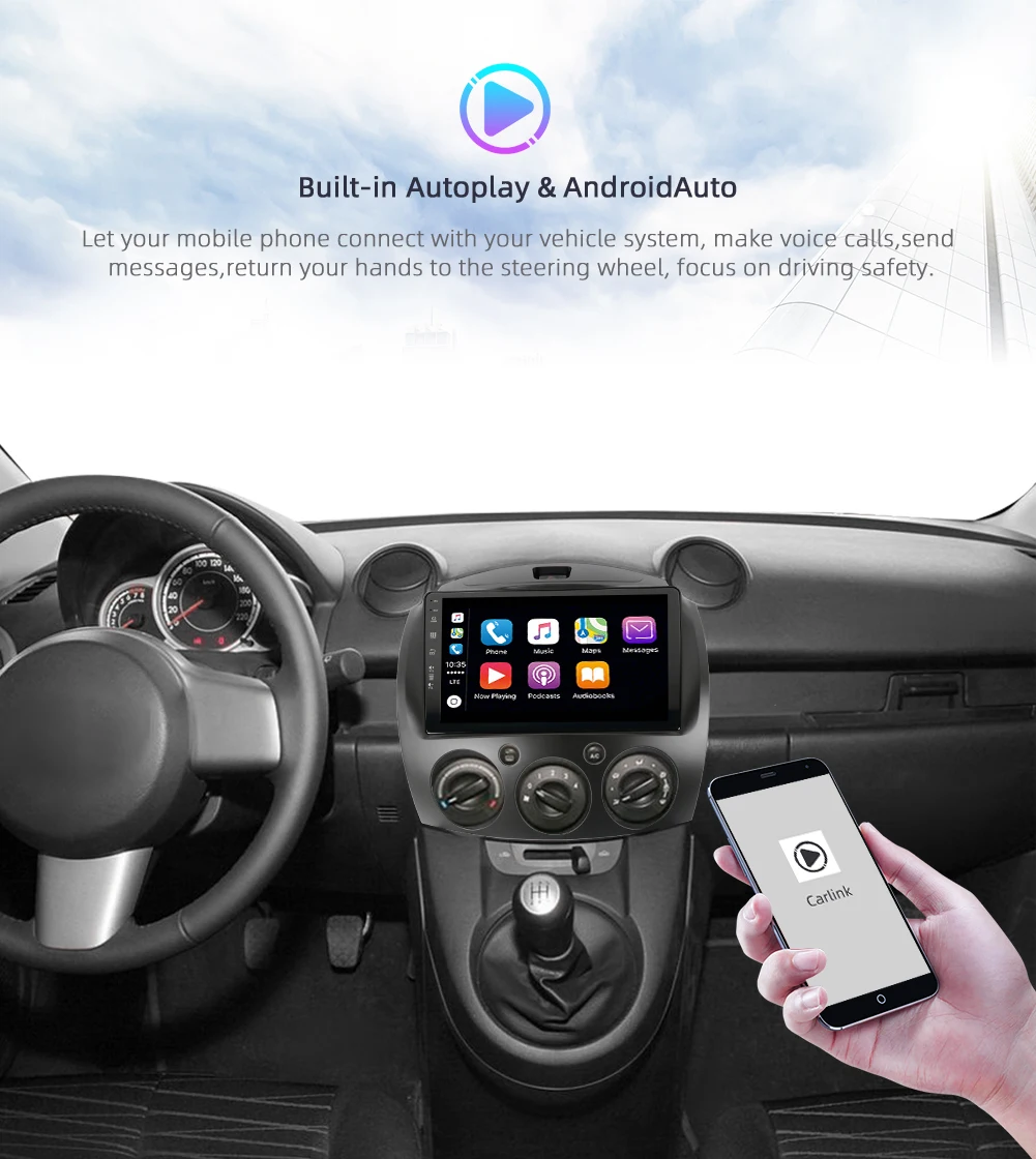 Это автомобильное радио подходит для установки Mazda 2 2007-2012
