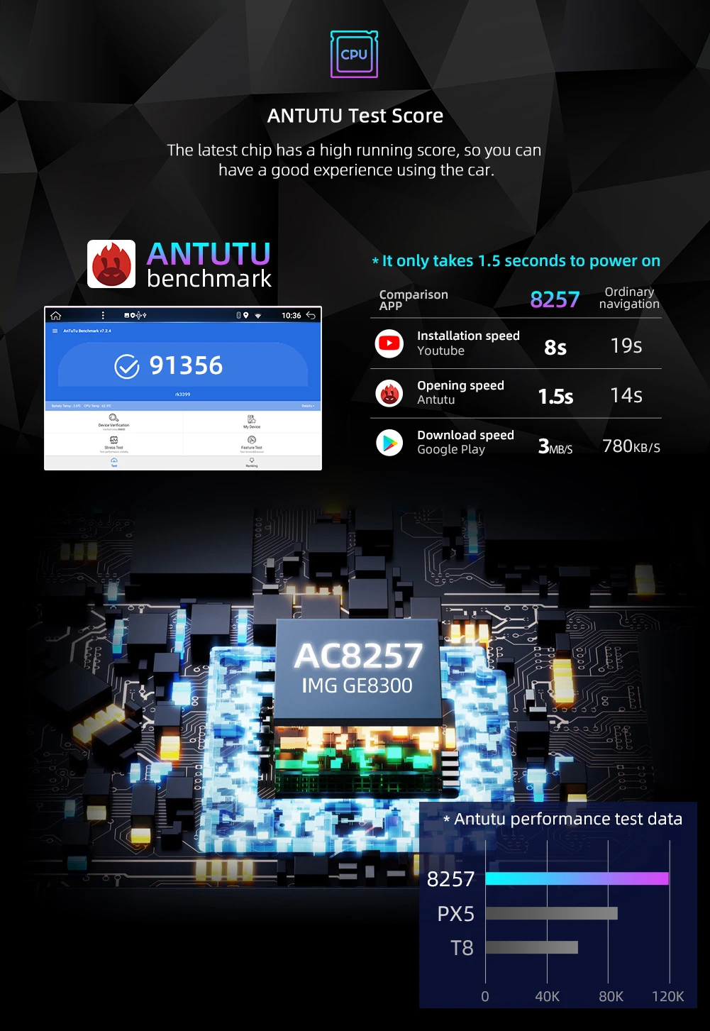▲-На базе Android 10.0 операционная система-AC8257 A35 /Octa Core /4 ГБ ОЗУ/64 Гб ПЗУ-Бесплатная камера заднего вида-Максимальная емкость, не более «недостаток» в памяти, делает обработку данных более эффективной, в то время как режим ускорения оптимизирован быстро и плавно