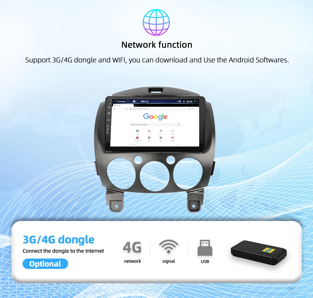 ▲Поддержка Dab + Радио, зеркальная ссылка и оригинальная функция управления рулевым колесом автомобиля, USB & micro SD до 500 Гб, встроенный WiFi Интернет, Google Maps онлайн навигация, Бесплатная автономная навигация по карте, магазин Google Play