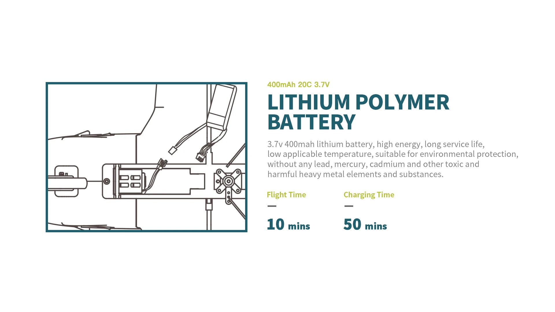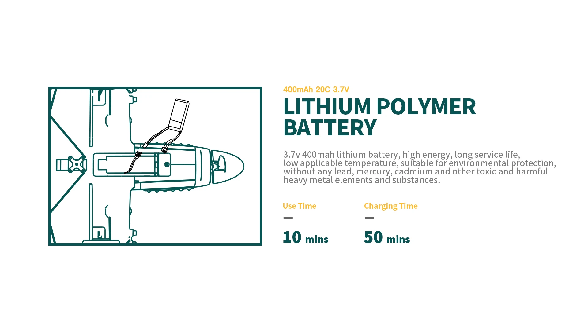 Батарея детали: Основная часть: LI-POLY 3,7 V (400 мА · ч) 20C