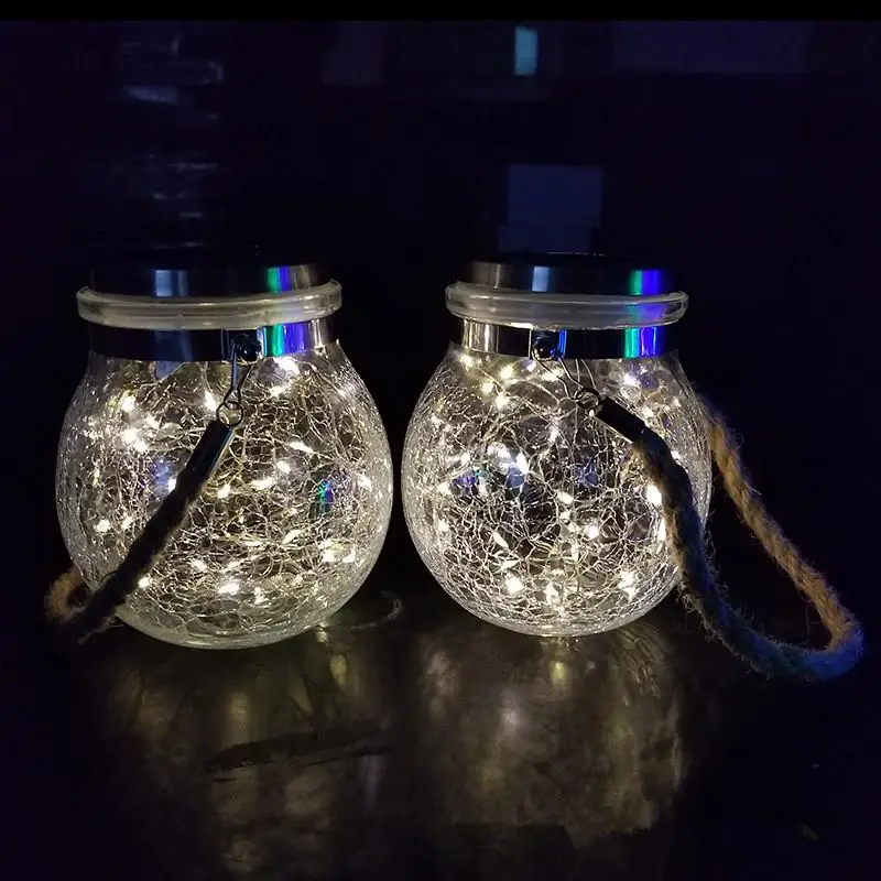 Светодиодный солнечный Ночной светильник, сетевое зарядное устройство с американской вилкой и изображением трещин шар со стеклянным кувшином лампа на открытом воздухе украшения сада дерево звезды медный провод Светильник s.