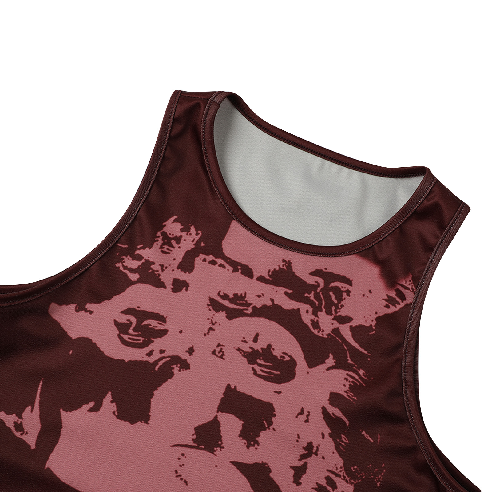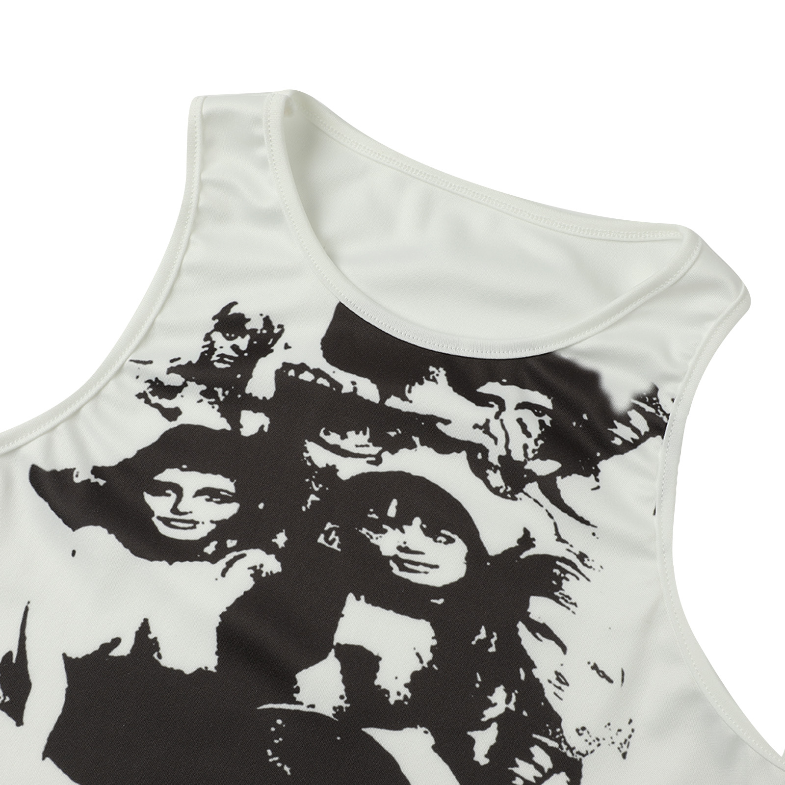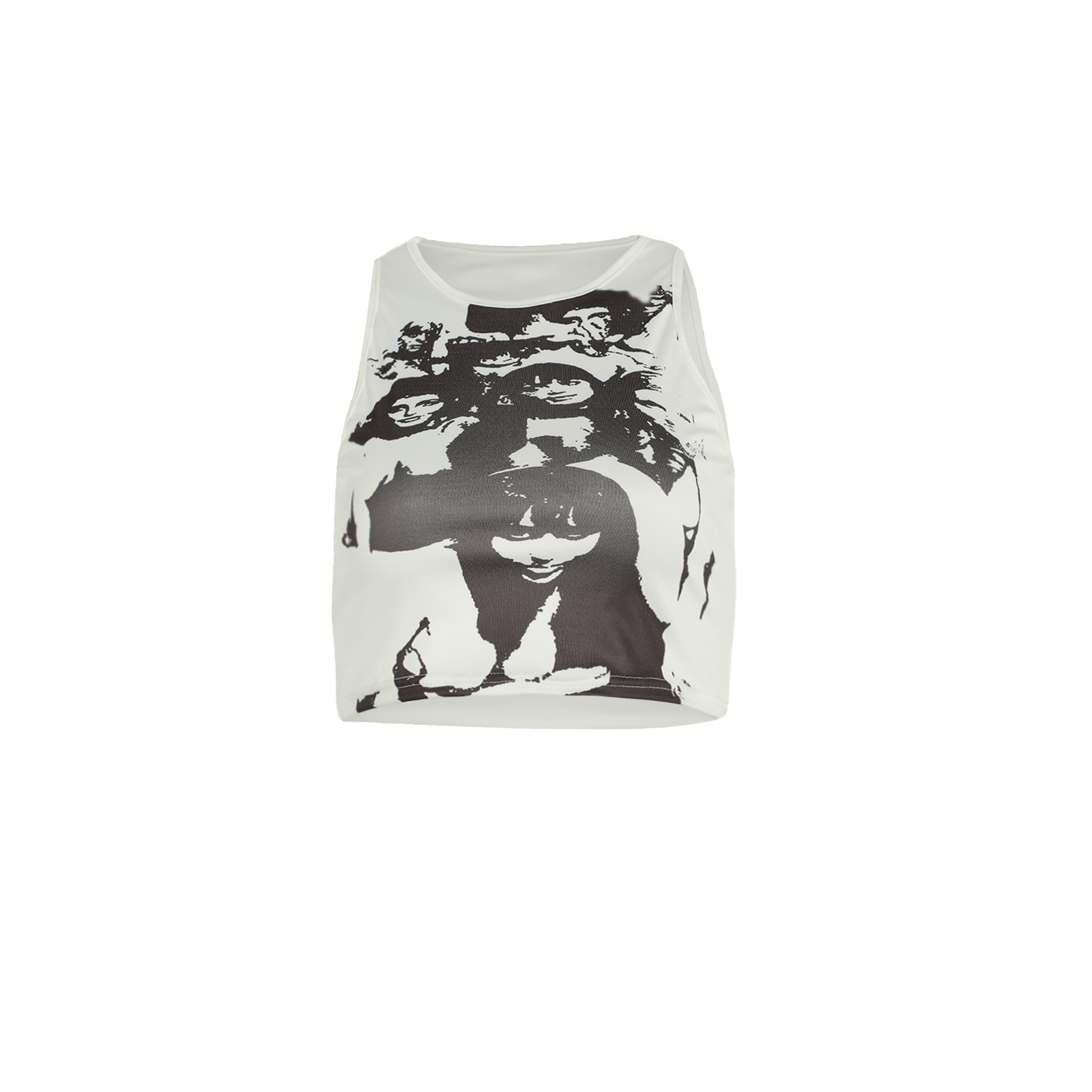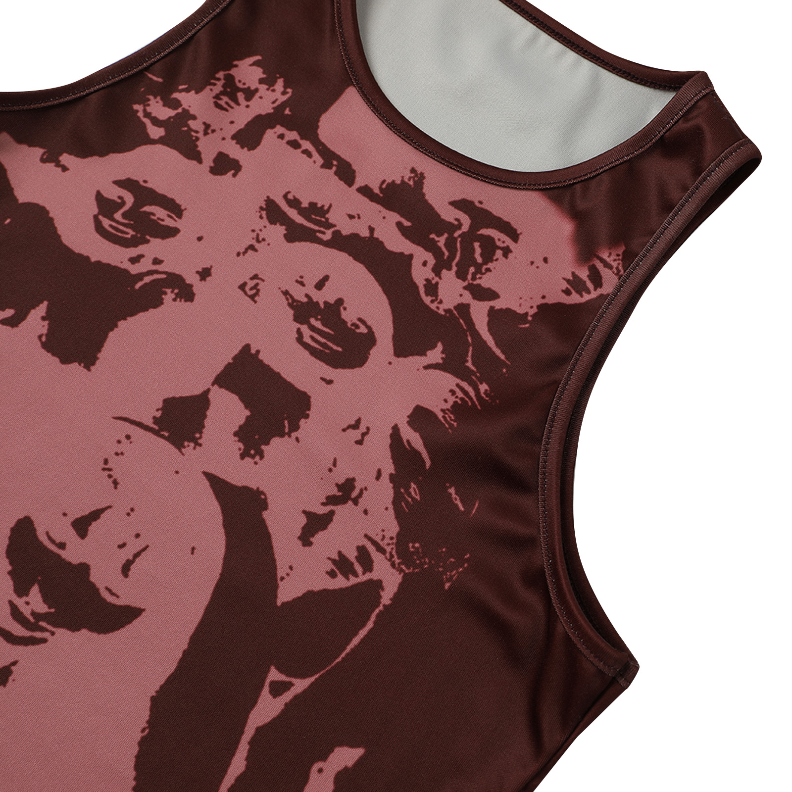 Этот женский жилет имеет шикарный принт головы, облегающий крой и классический круглый вырез.