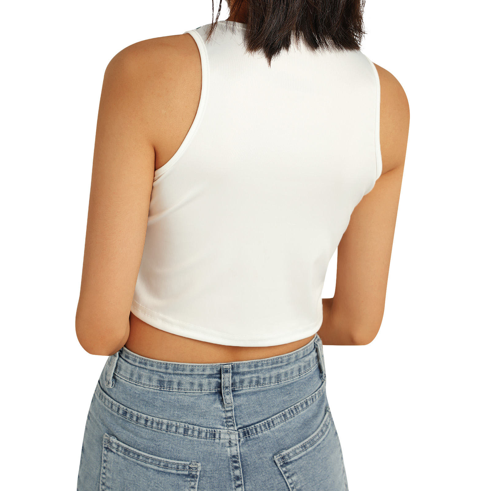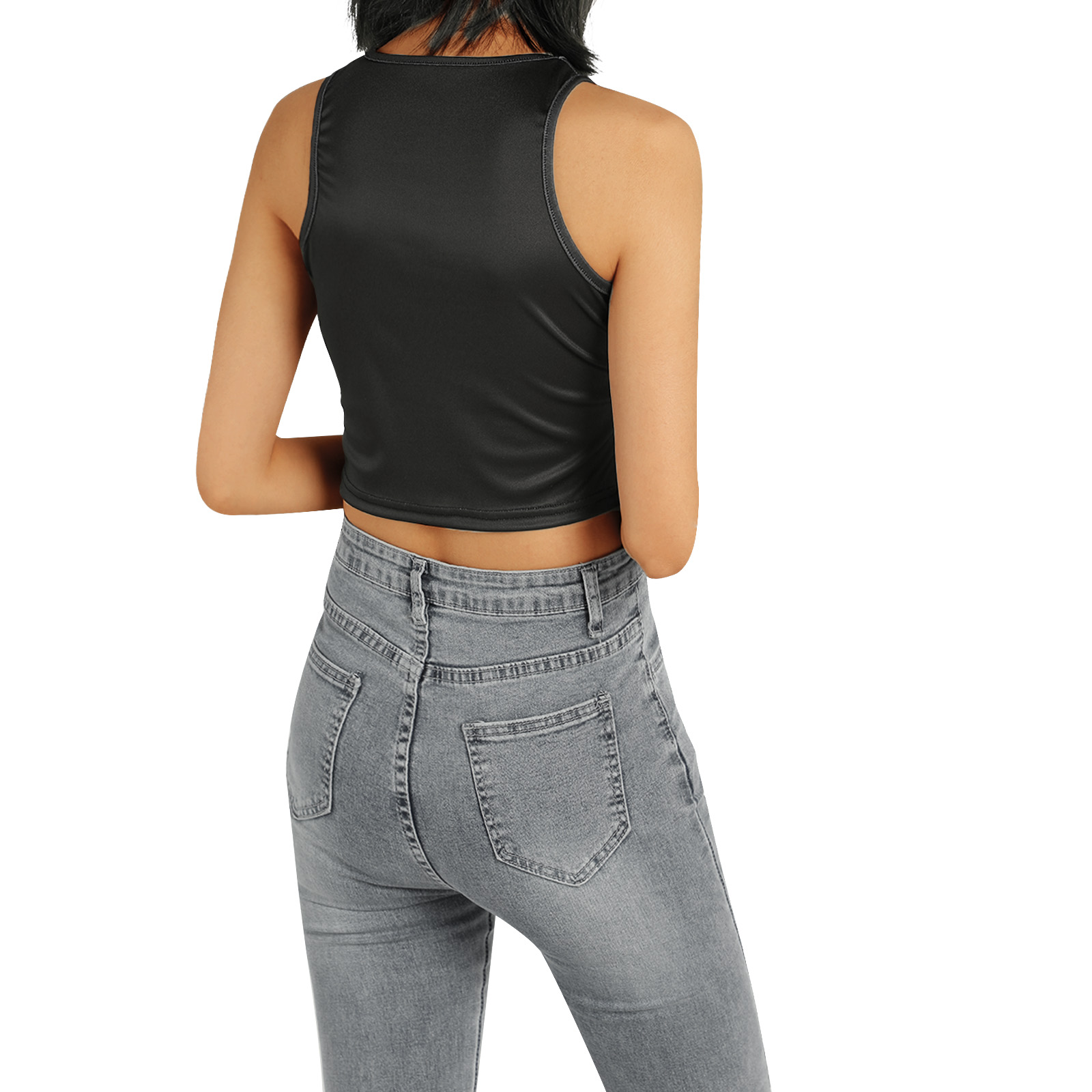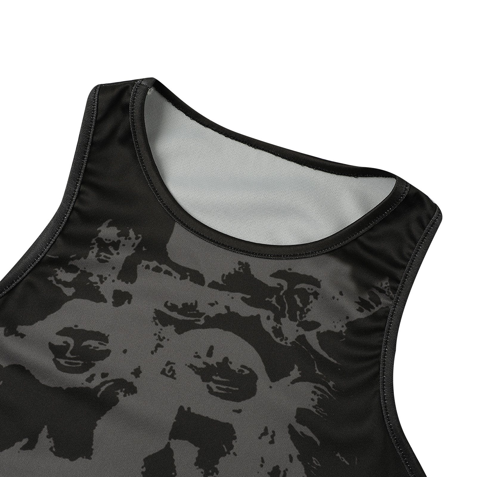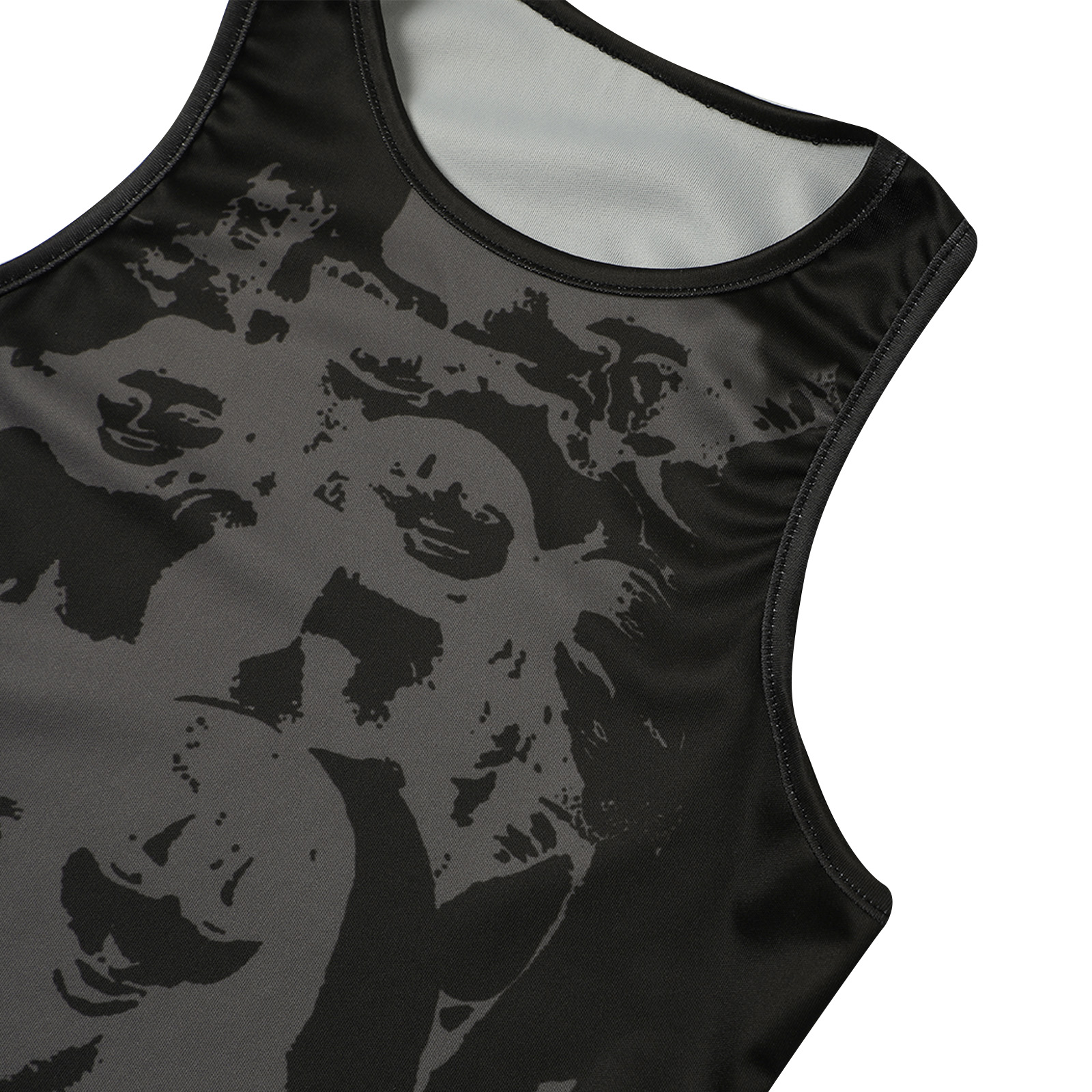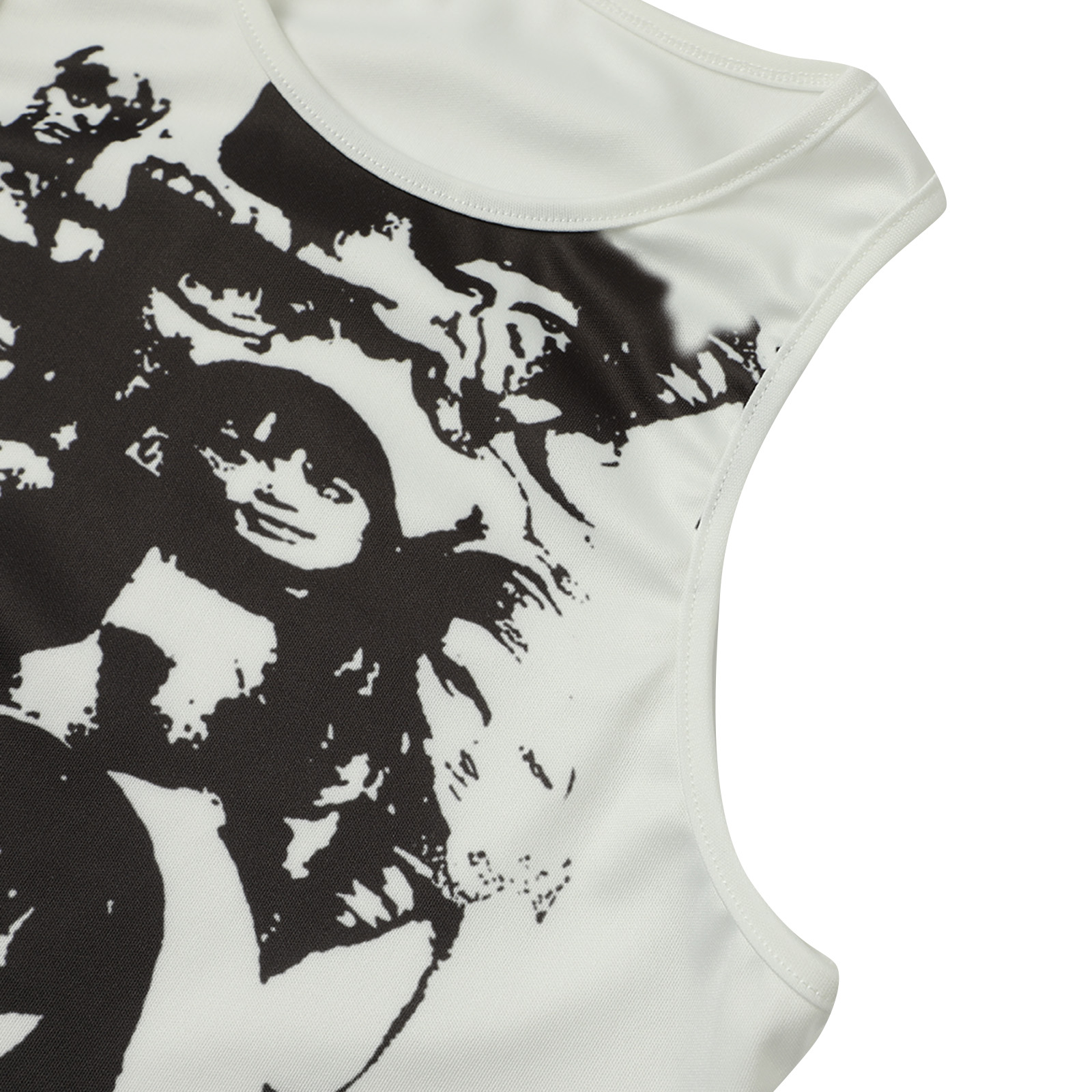 Этот женский жилет имеет шикарный принт головы, облегающий крой и классический круглый вырез.