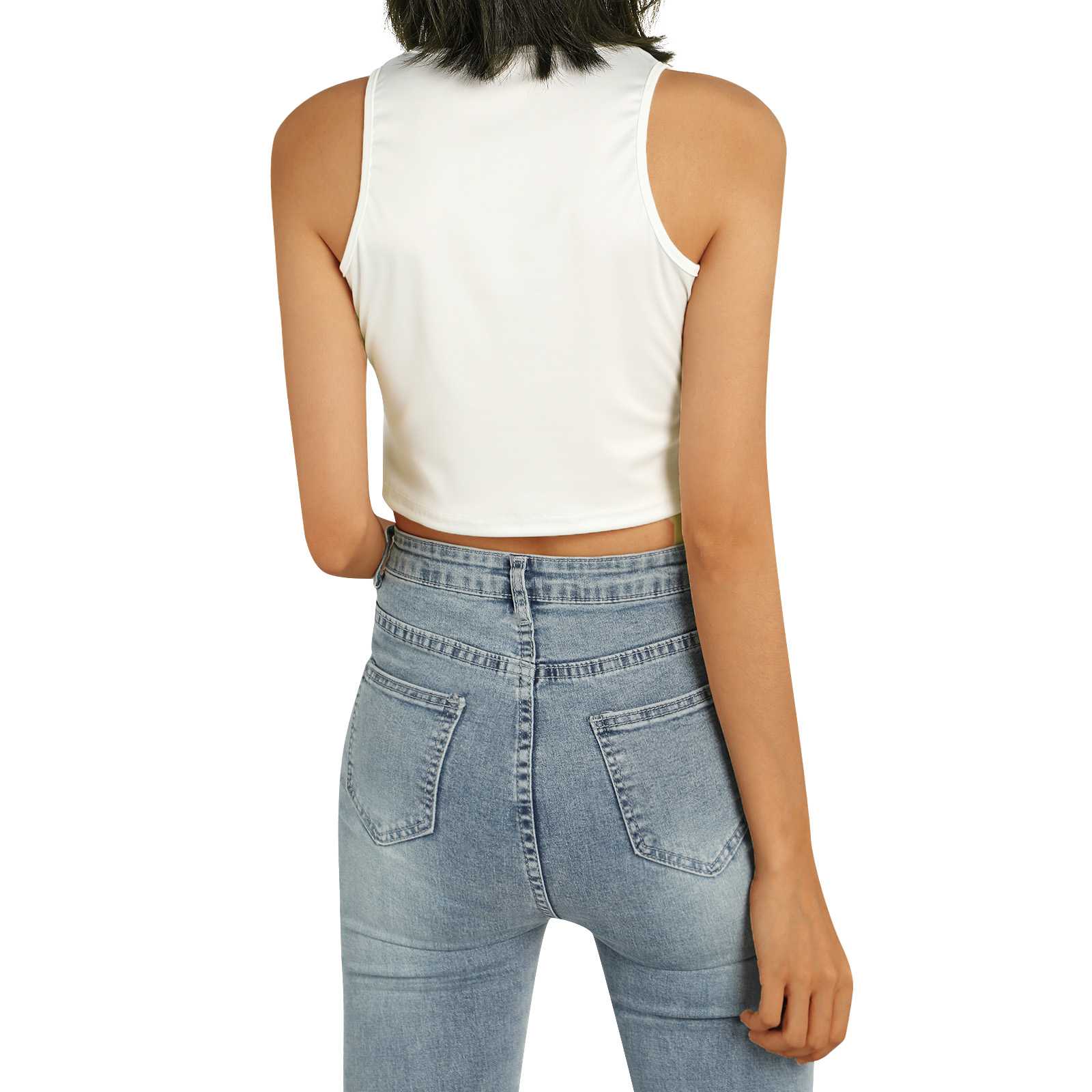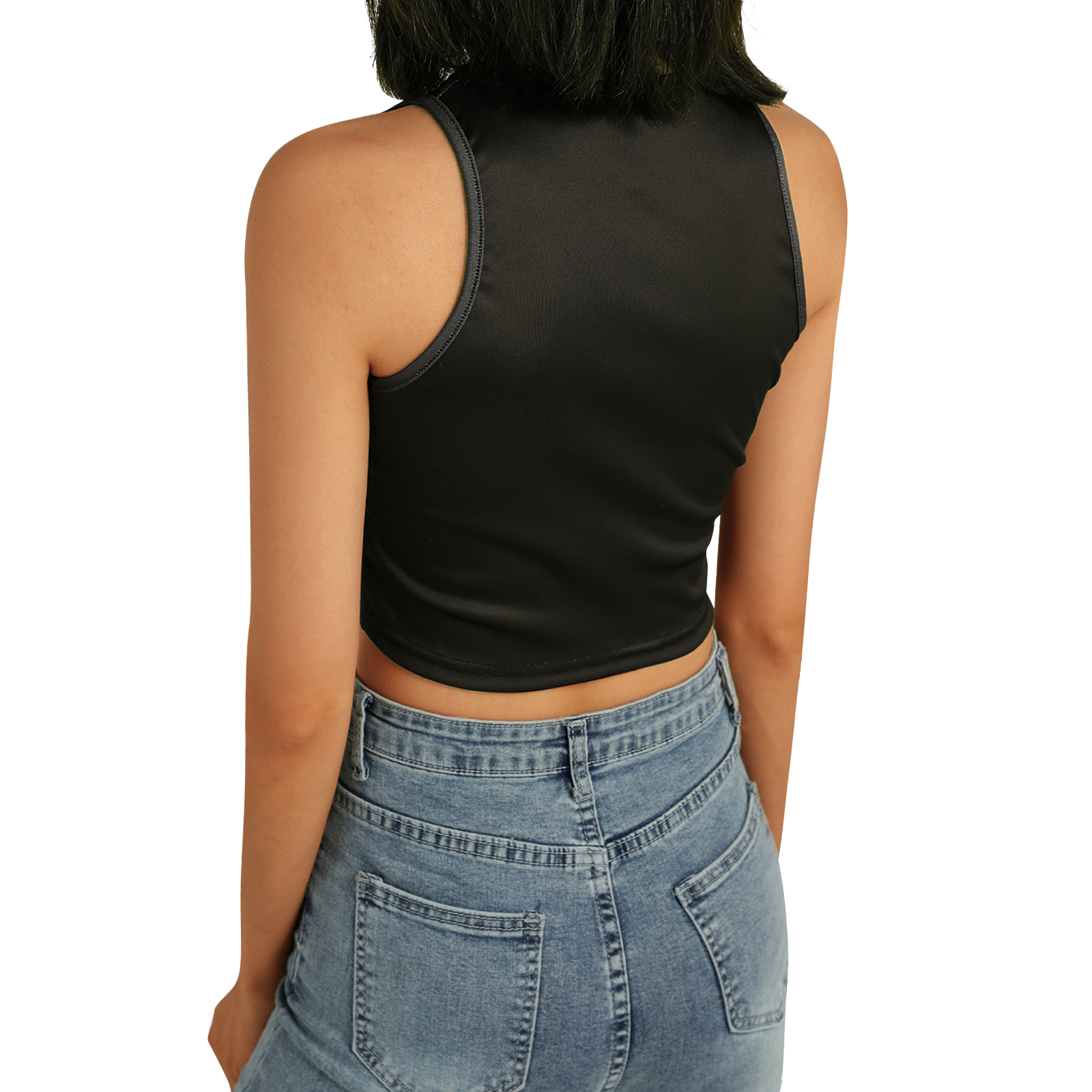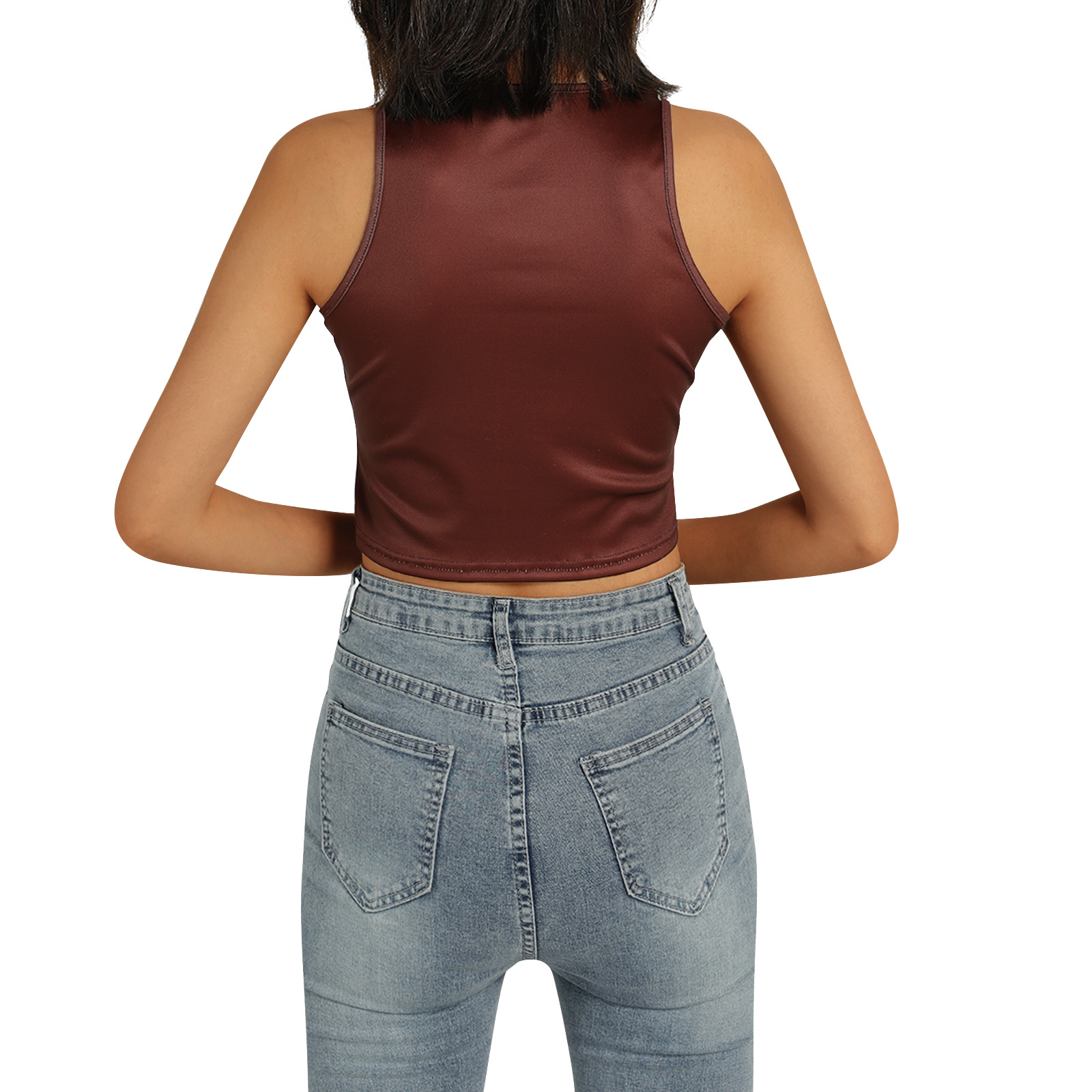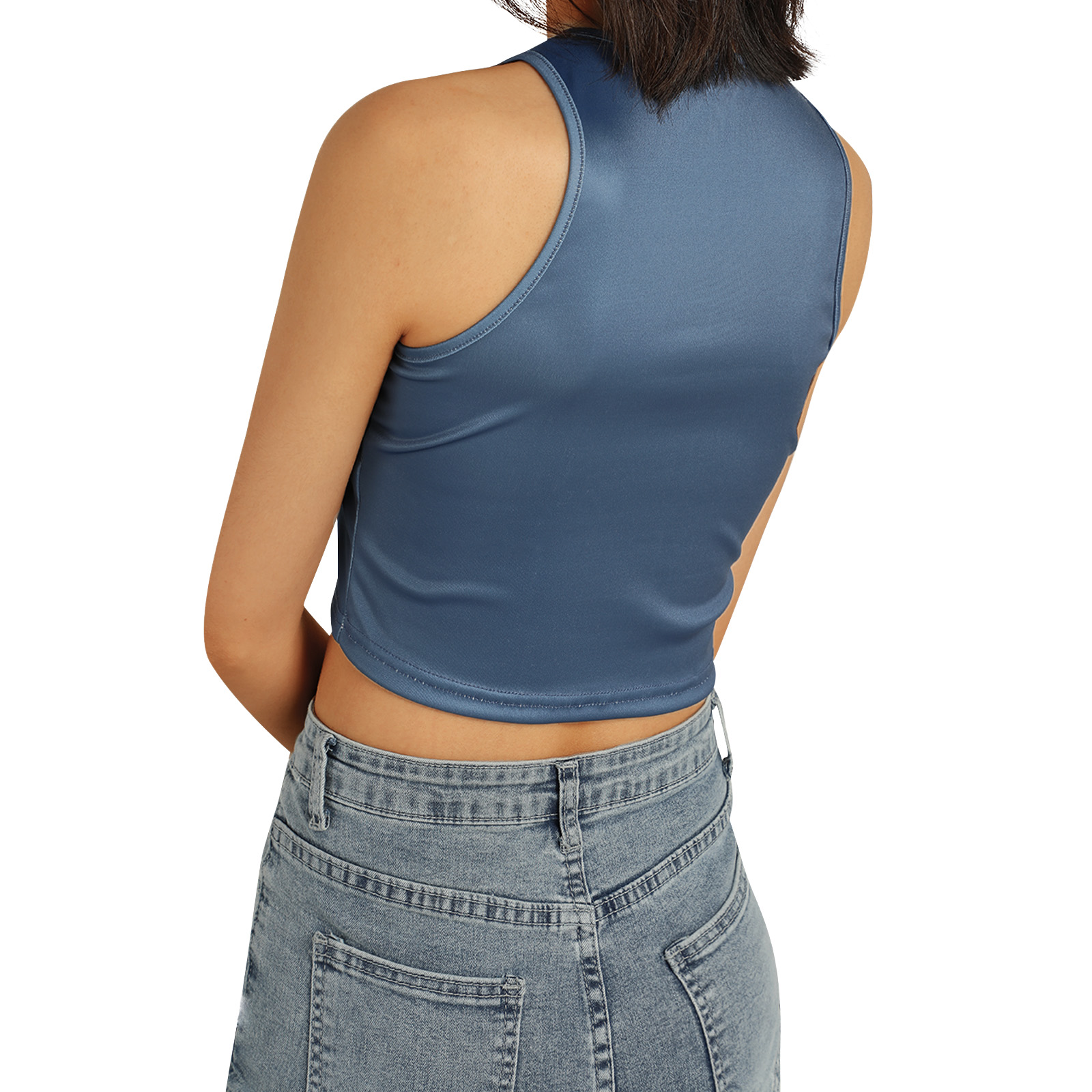 Этот женский жилет имеет шикарный принт головы, облегающий крой и классический круглый вырез.