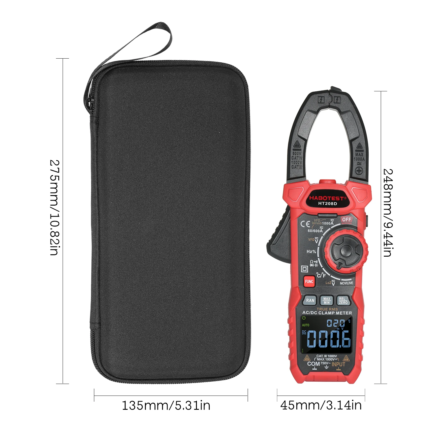 Мультиметр с зажимом: измеряет входной ток, ток/напряжение VFD, ток переменного/постоянного тока, напряжение переменного/постоянного тока, частоту, коэффициент работы, сопротивление, непрерывность, диод, емкость, температуру, бесконтактное Обнаружение напряжения переменного тока (NCV) и обнаружение в режиме реального времени.