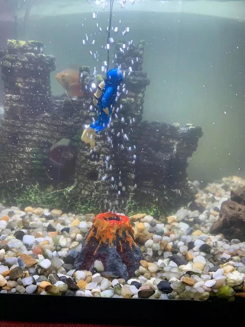 -Rockery может использоваться в качестве Пейзажа для вашего аквариума. Вы также можете поместить насос кислорода в вулкан, показывая эффект пузыря.
