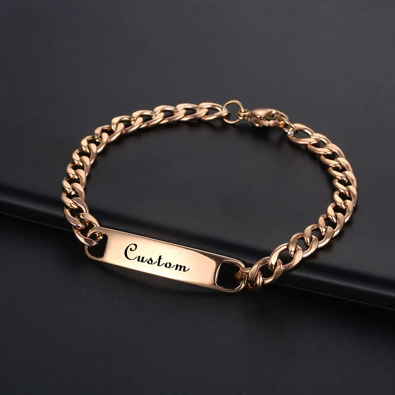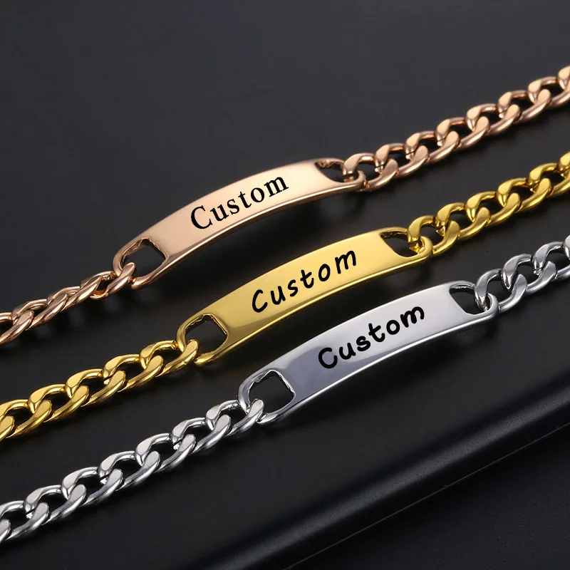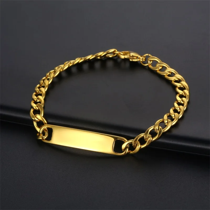 Название: Пользовательские гравировальные именные браслеты для мужчин и женщин из нержавеющей стали Индивидуальные персонализированные золотые 5 мм кубинские цепочки с буквенным браслетом ювелирные изделия