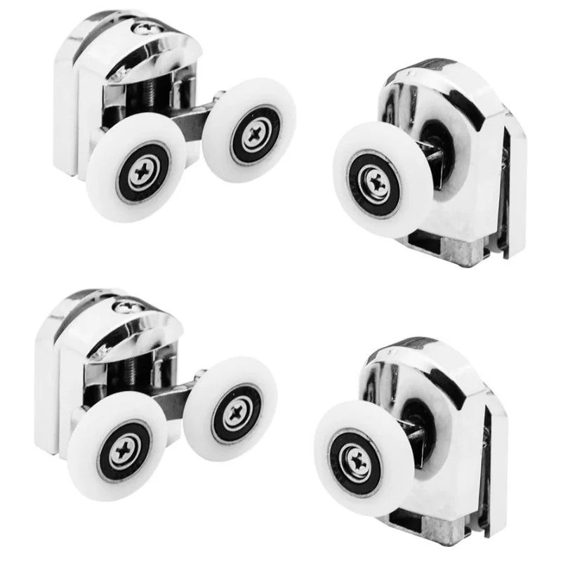 Ролики для душевых дверей кабин, диаметр колеса 22 и 25 мм, верхние двойные и нижние одинарных. Отверстие в стекле: d-12 мм.