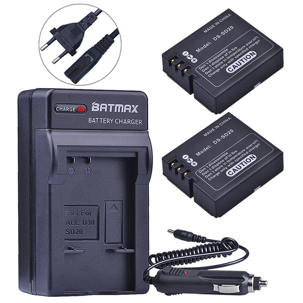 2 шт., аккумуляторы DS-SD20 + одно зарядное устройство для экшн-спортивных камер AEE Magicam SD18 SD19 SD20 SD21 SD22 SD23 SD30 Rollei 3 S