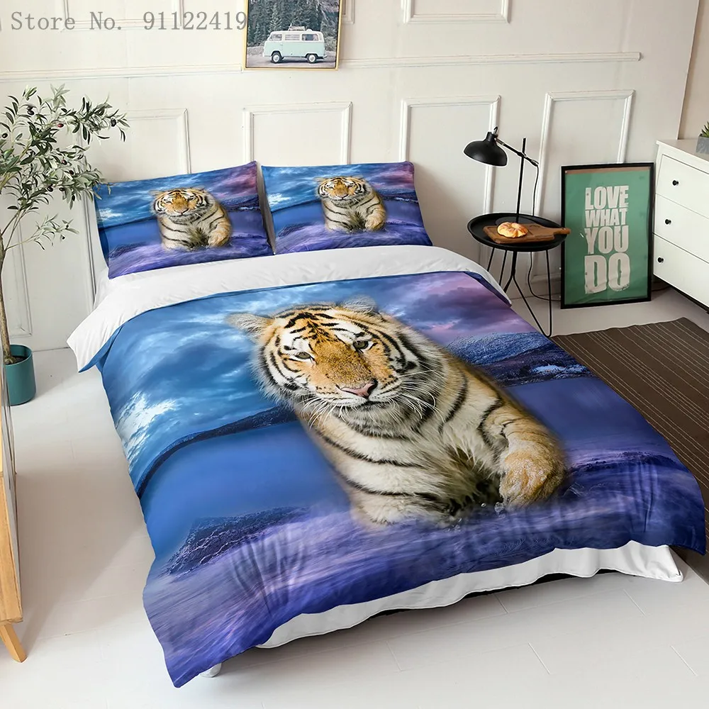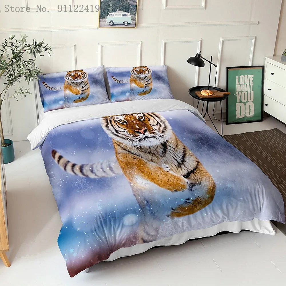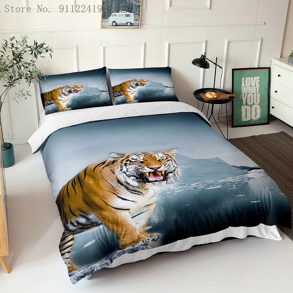 Белый тигр печатных постельное белье 3D животных Северо-комплект для кровати с принтом «Тигр» двойной полный Queen King Размеры 2/3 шт постельное белье для взрослых